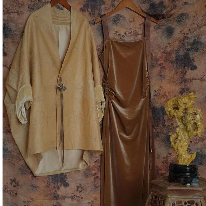 『1萬人收藏』絲絨吊帶連衣裙套裝|國風高級氛圍感套裝|新中式時尚小眾