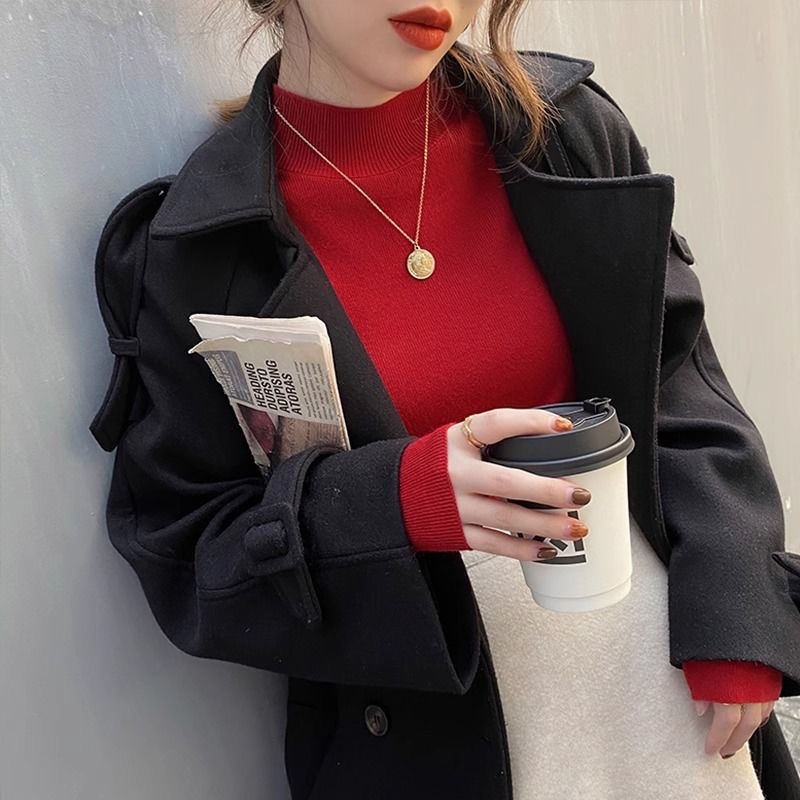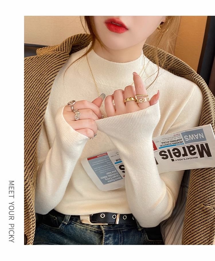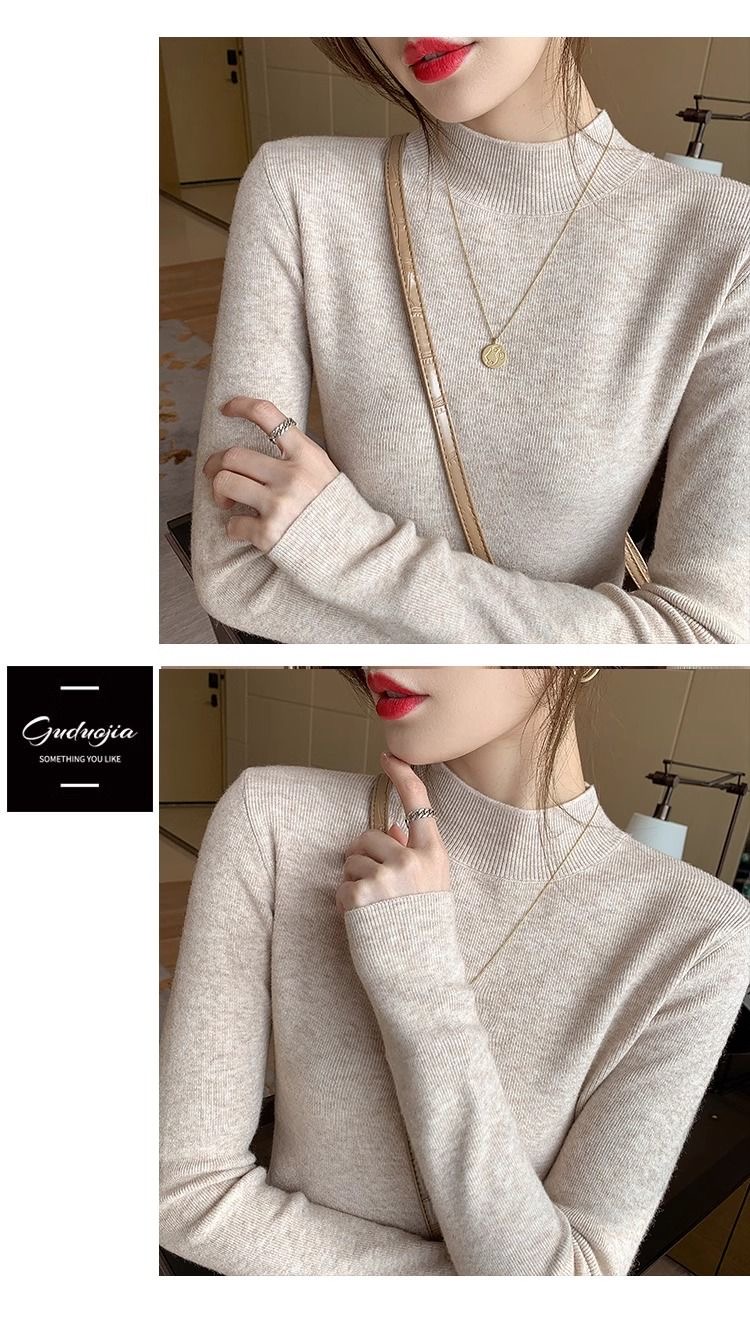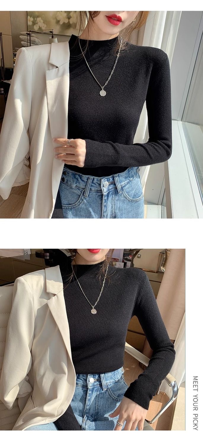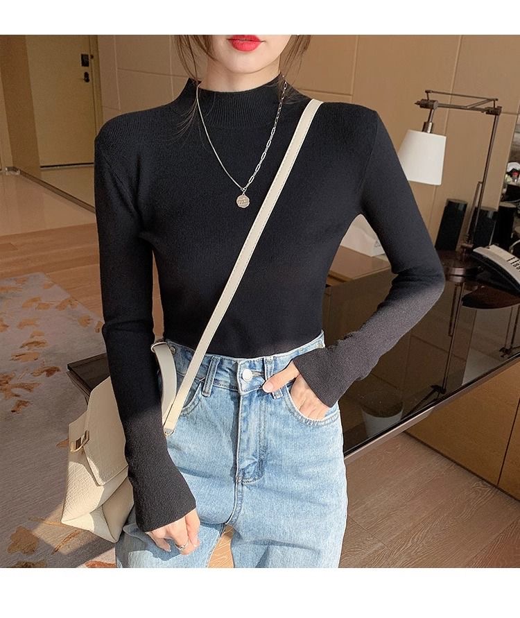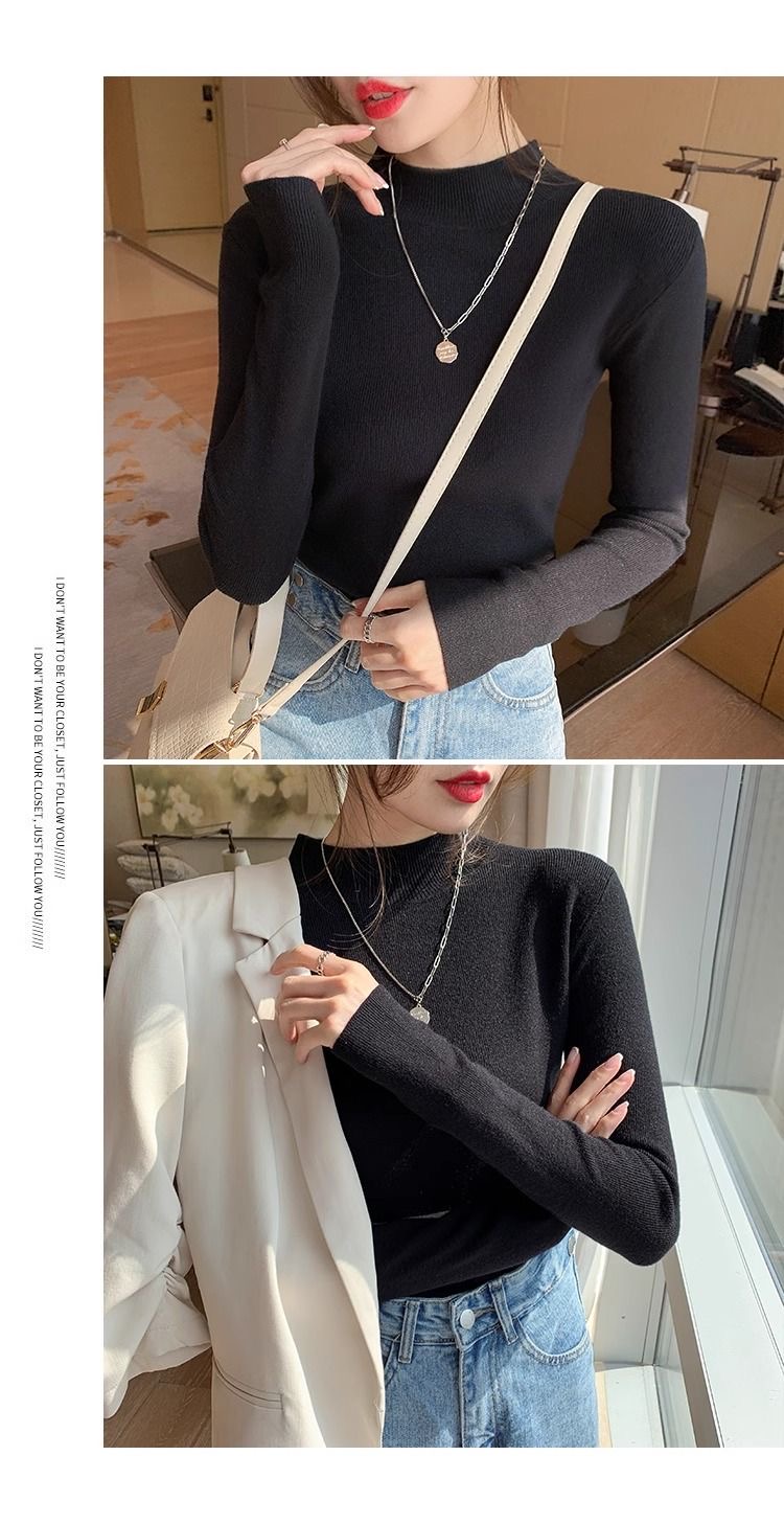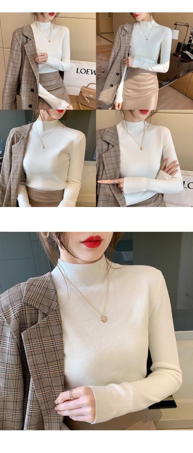 秋冬簡約半高領針織打底衫 | 軟糯洋氣修身長袖內搭毛衣