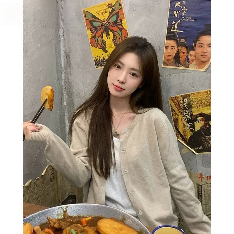 韓系軟糯針織開衫 | 秋冬慵懶風 V | 領薄款百搭長袖外套