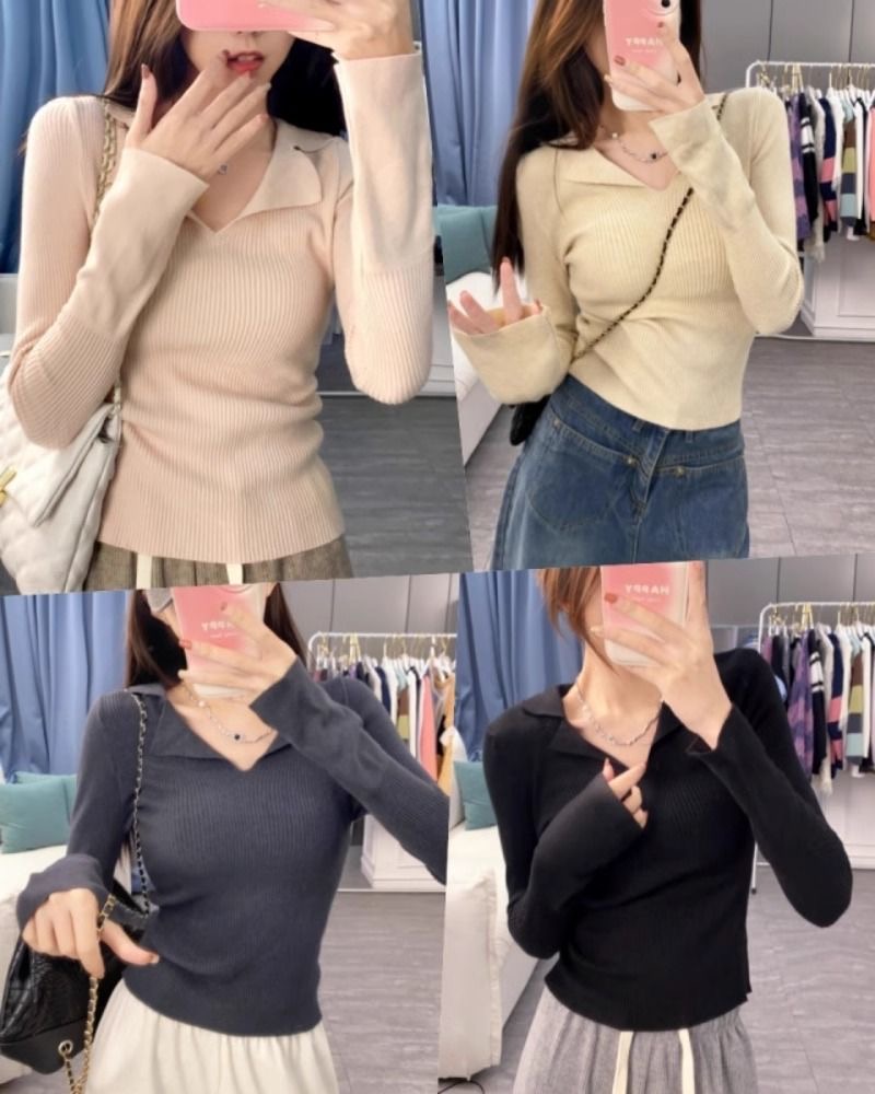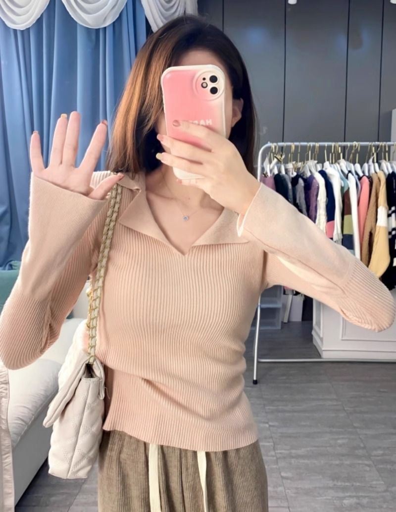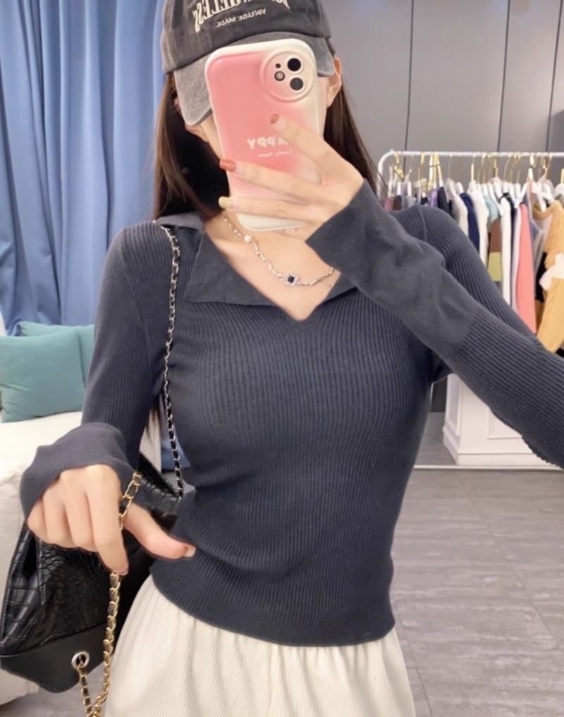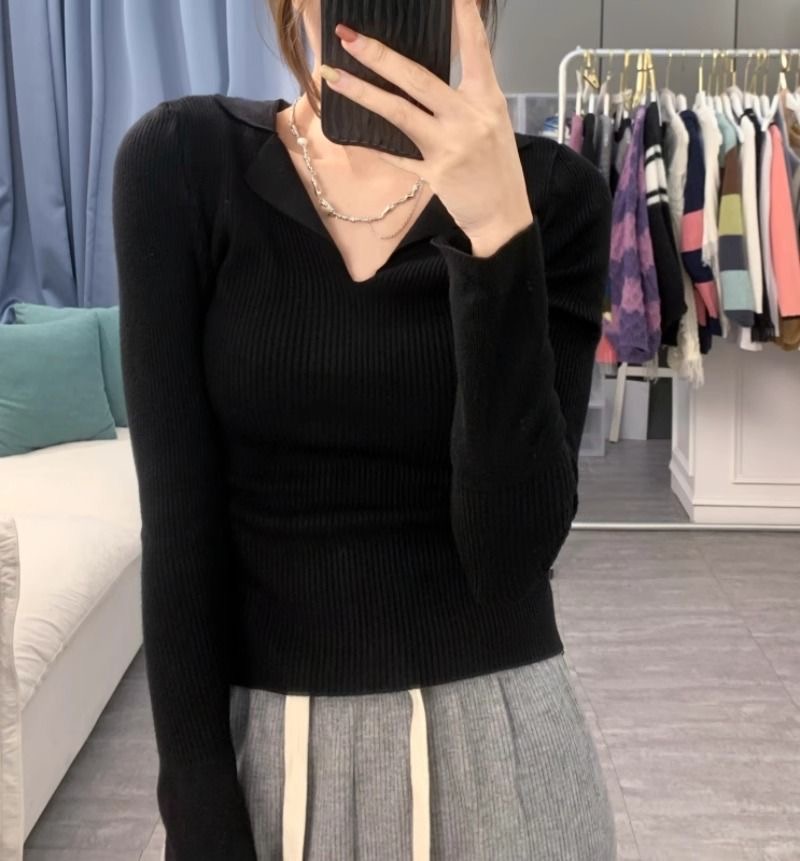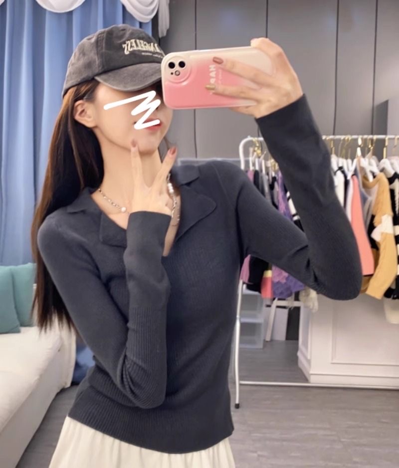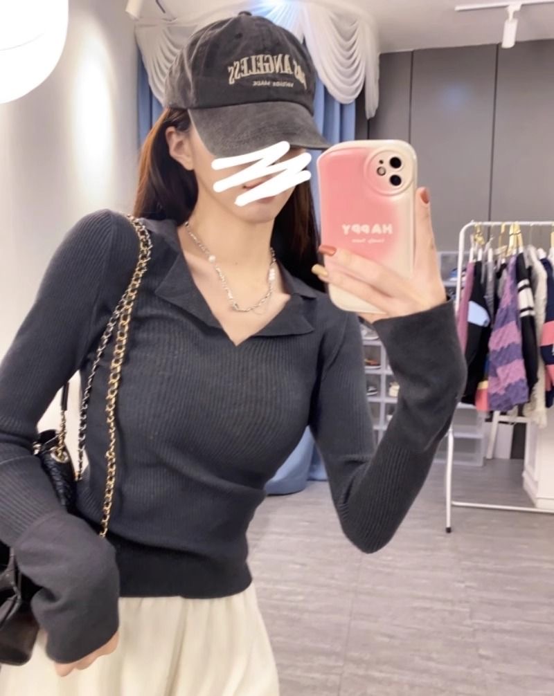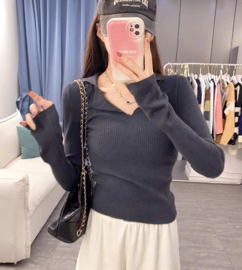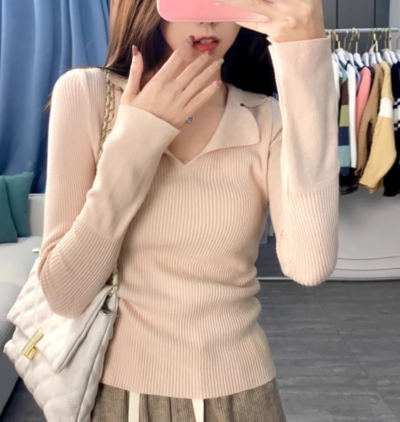 秋冬設計感針織打底衫 | 小眾 polo | 翻領修身顯瘦洋氣內搭毛衣