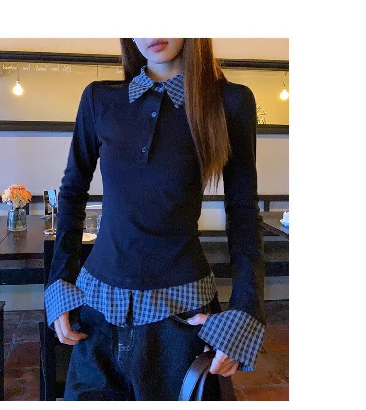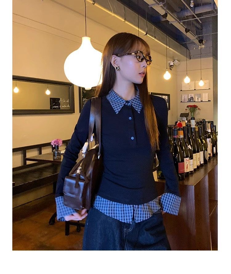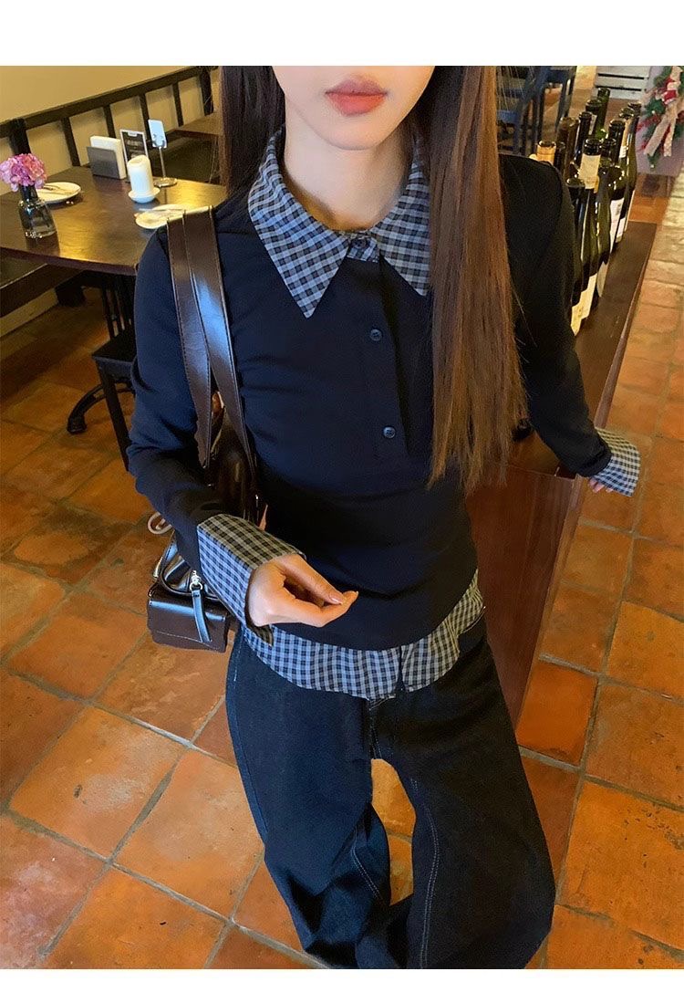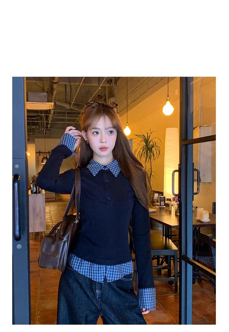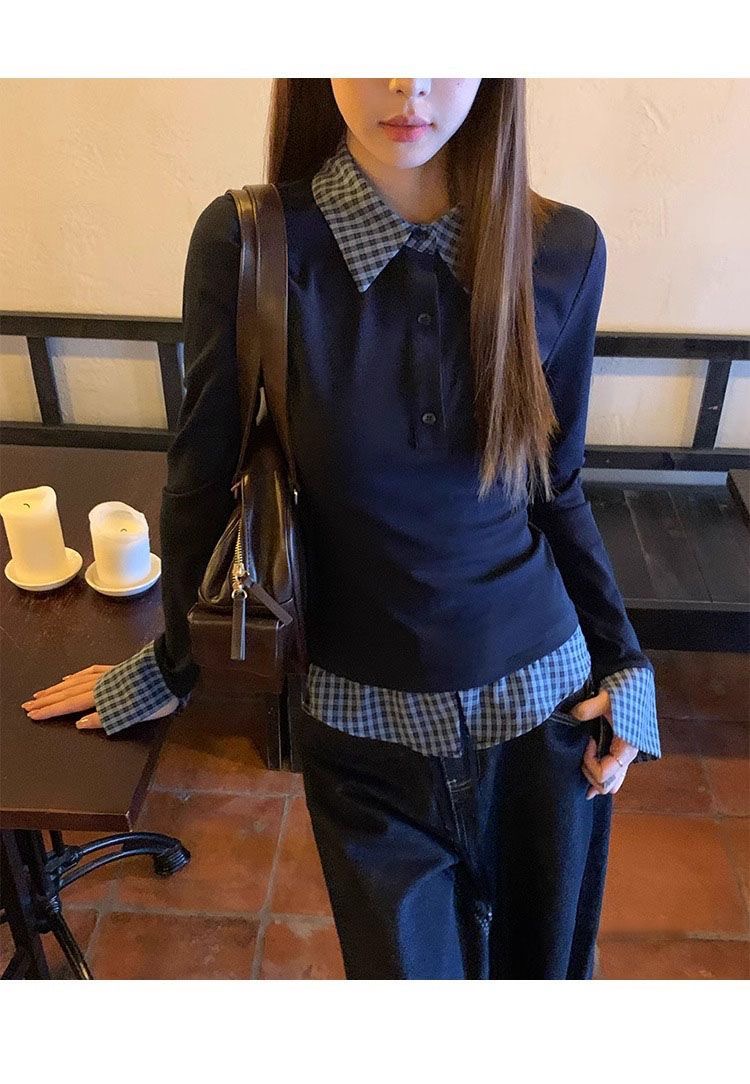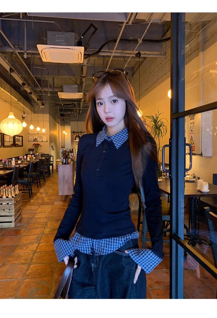 春季學院風 Polo 領假兩件 | 修身長袖 T 恤 | 百搭內搭打底衫上衣