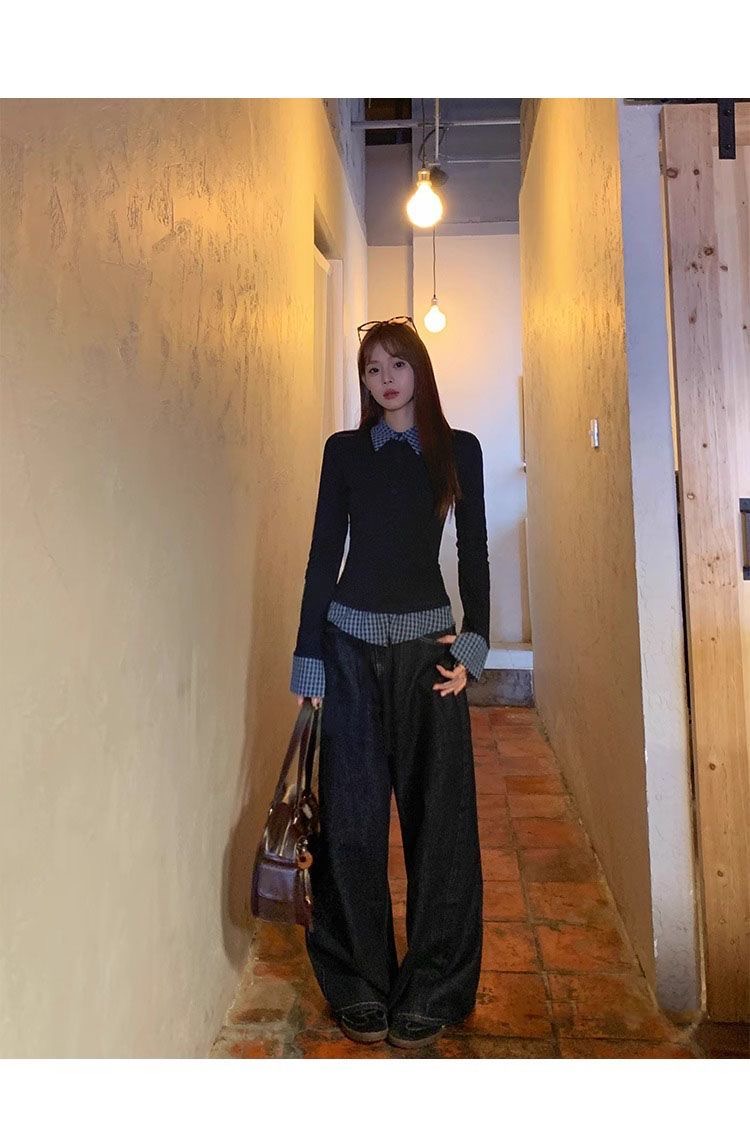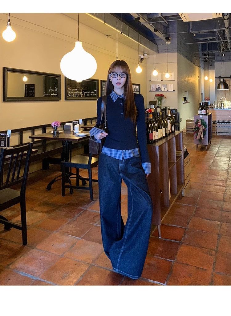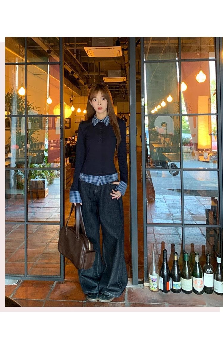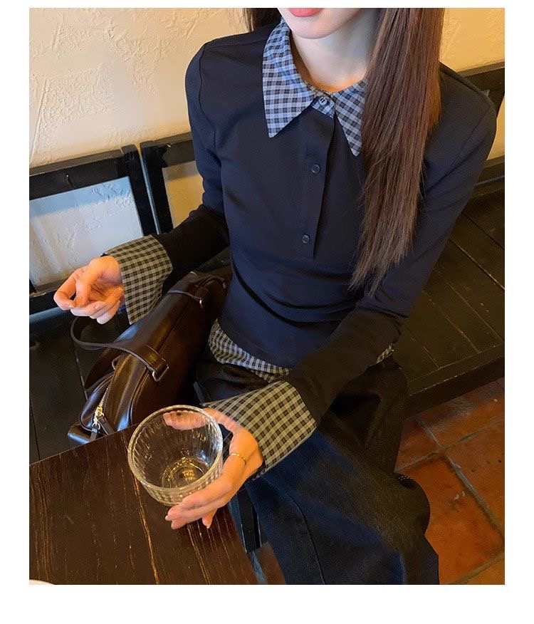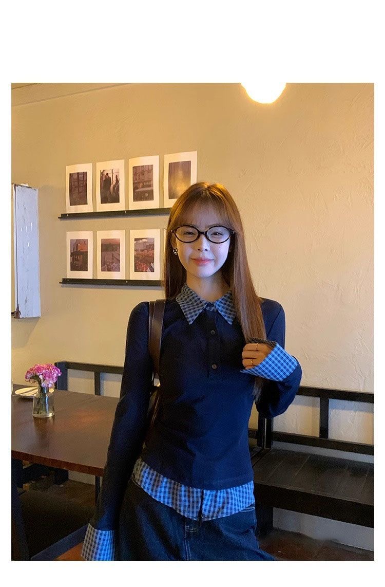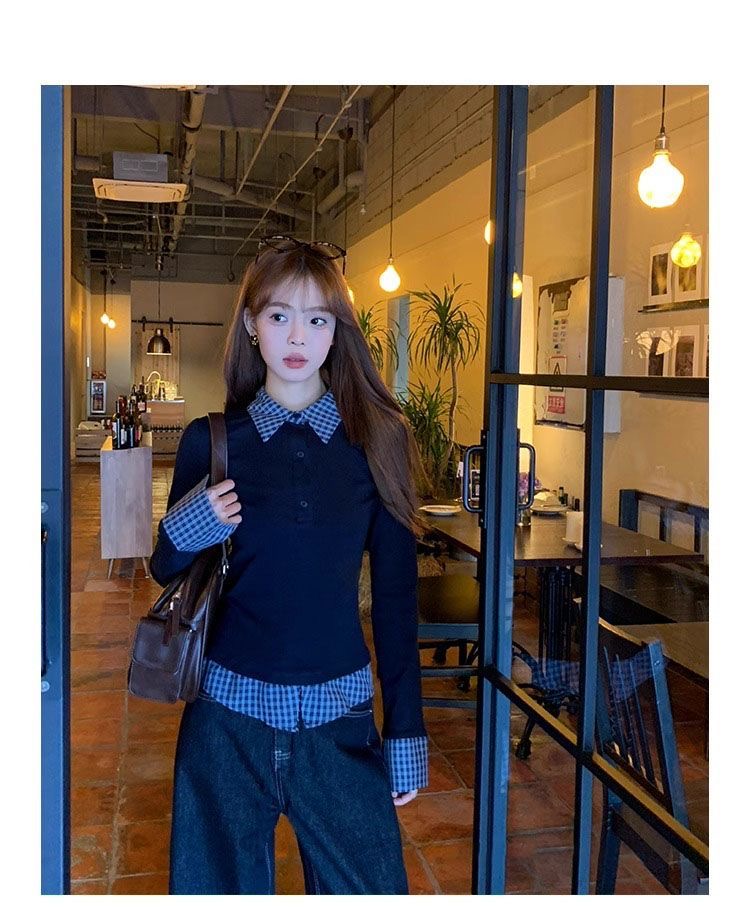 春季學院風 Polo 領假兩件 | 修身長袖 T 恤 | 百搭內搭打底衫上衣