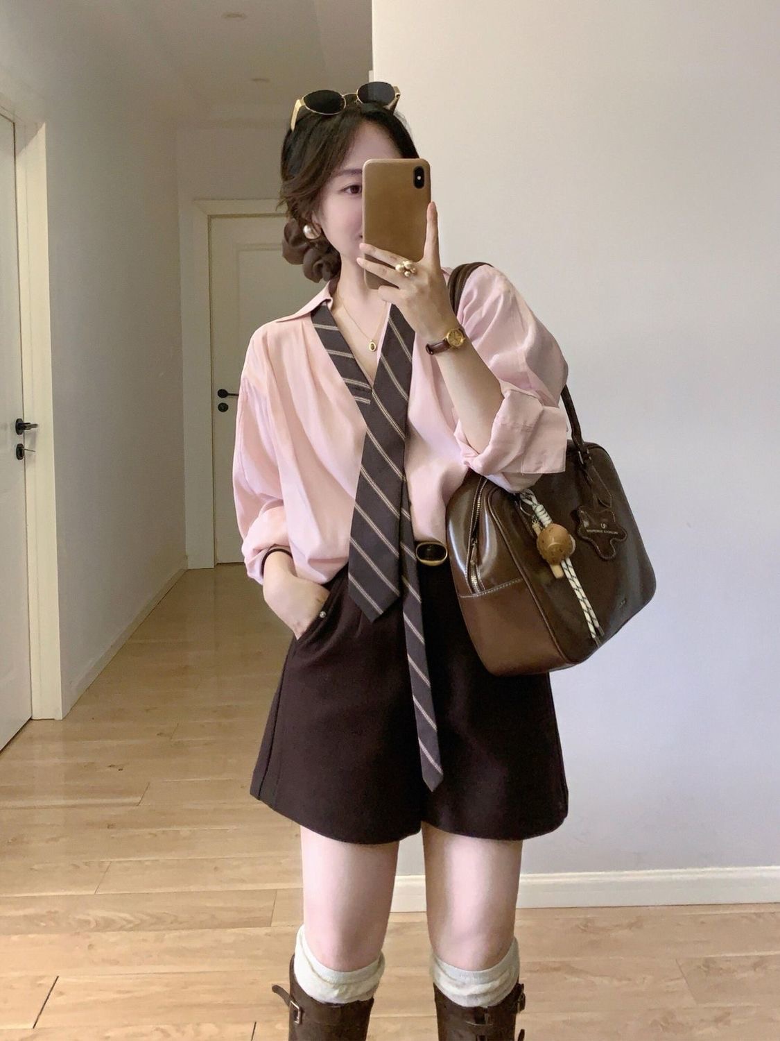 「帥帥風」粉色領帶西裝上衣|時尚減齡襯衫|質感通勤百搭上衣