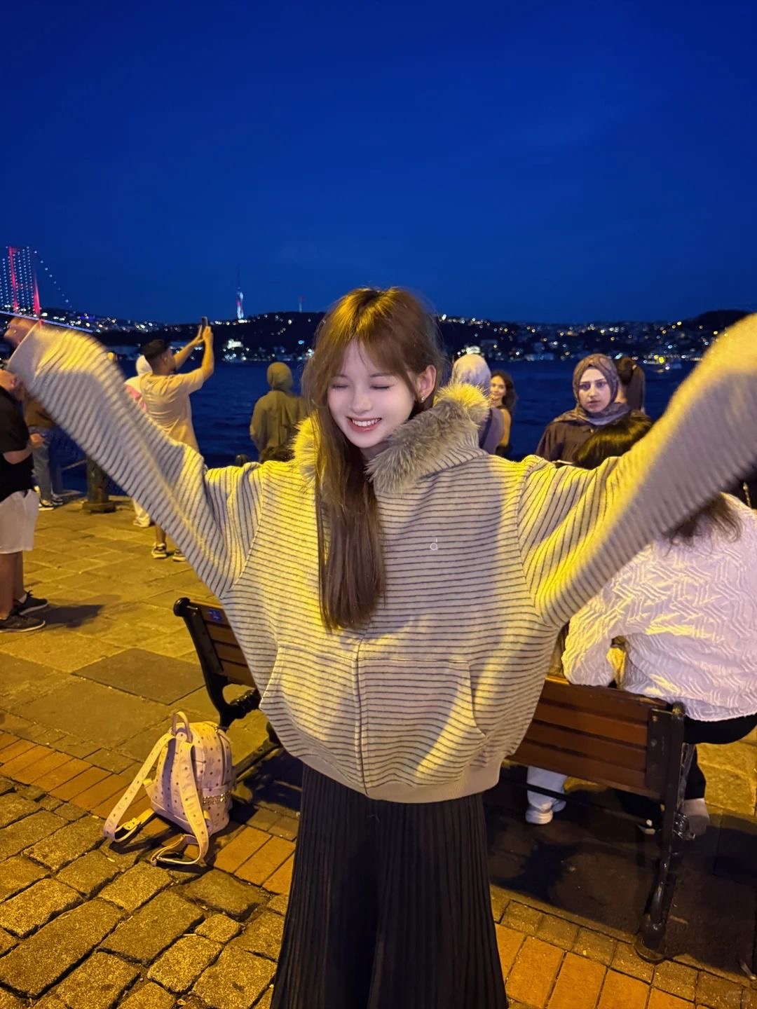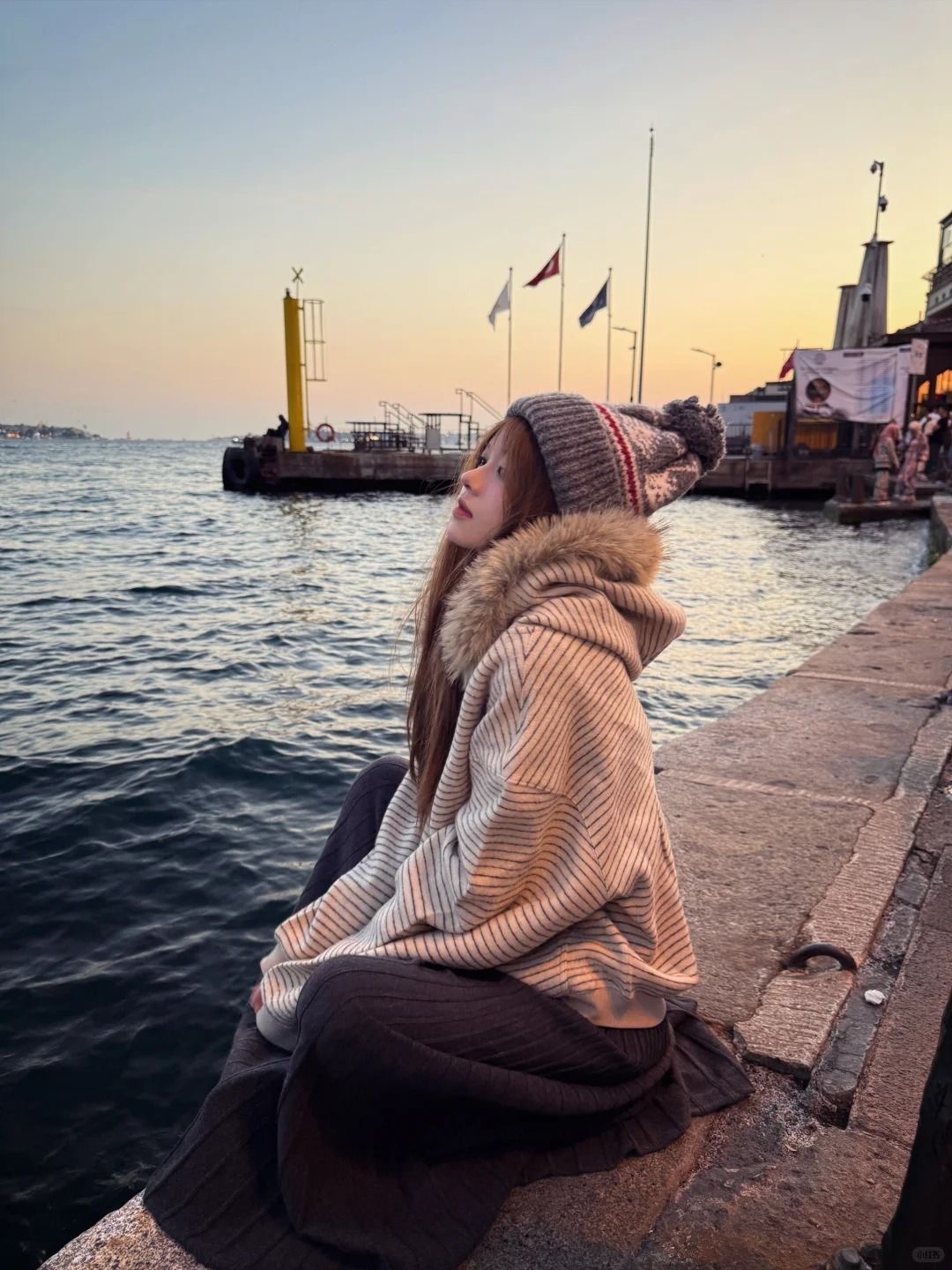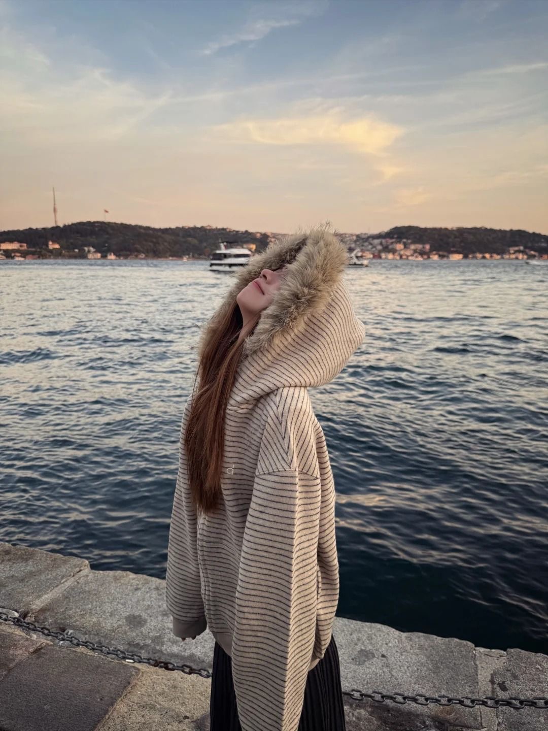 秋季新款寬鬆開衫外套 | 復古美式毛領條紋連帽拉鍊衛衣
