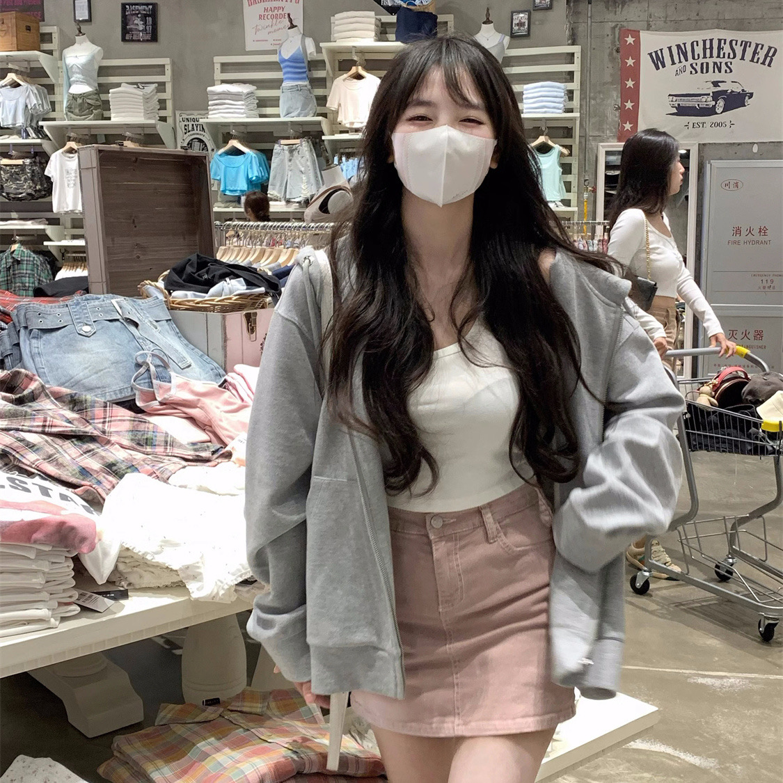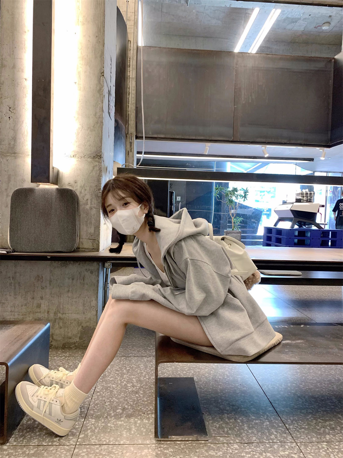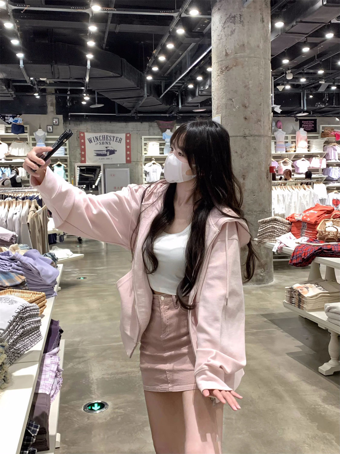 韓系軟糯連帽拉鍊百搭衛衣 | 寬鬆韓版開衫外套