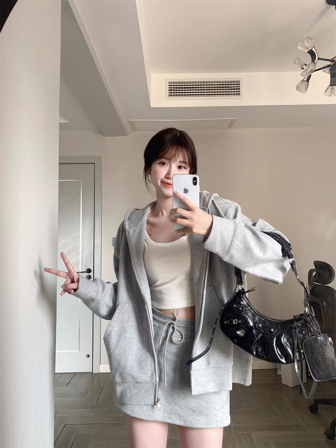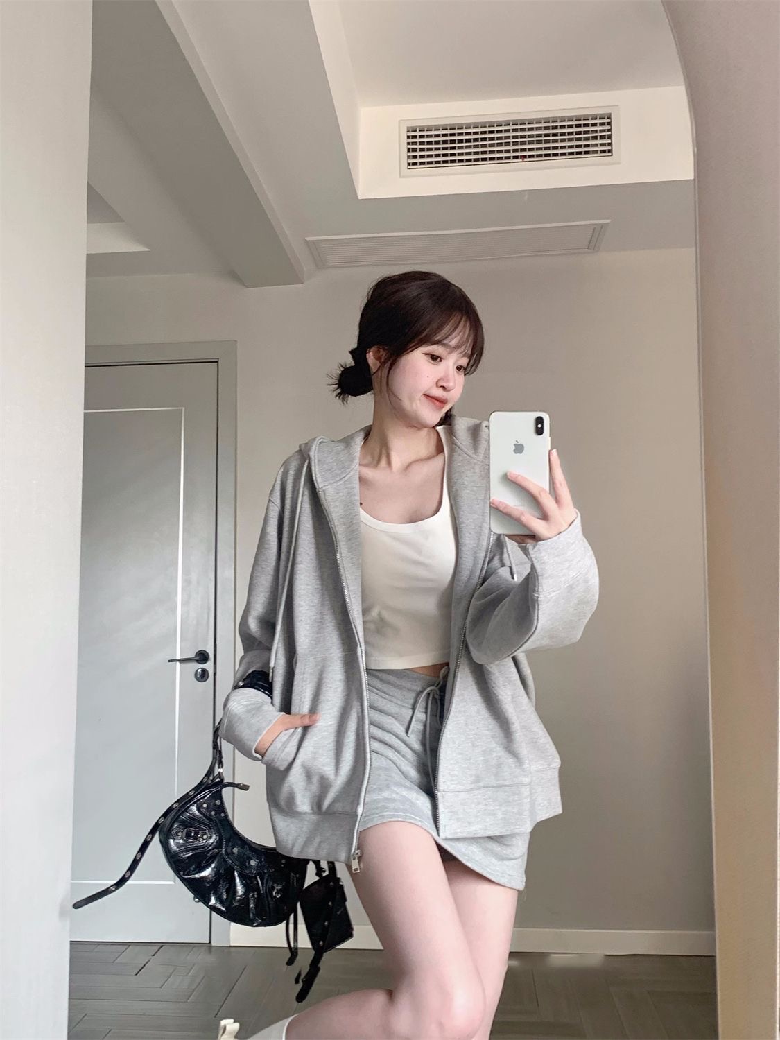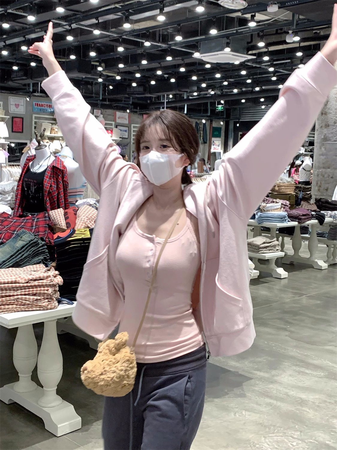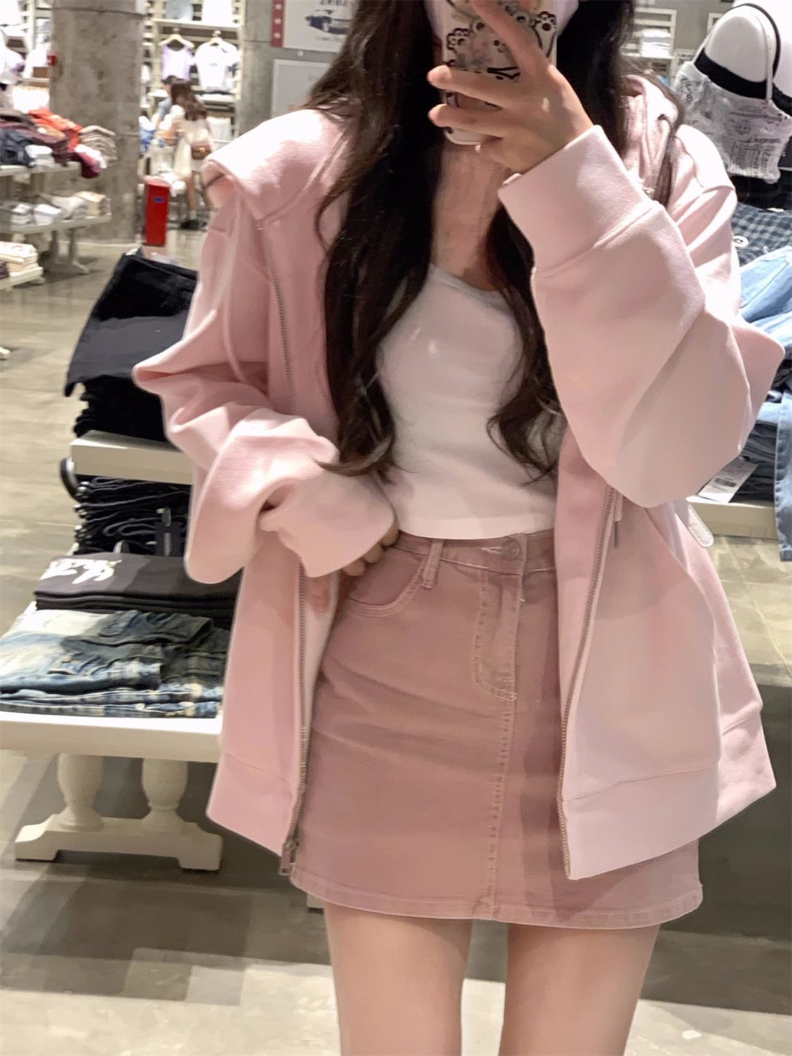 韓系軟糯連帽拉鍊百搭衛衣 | 寬鬆韓版開衫外套
