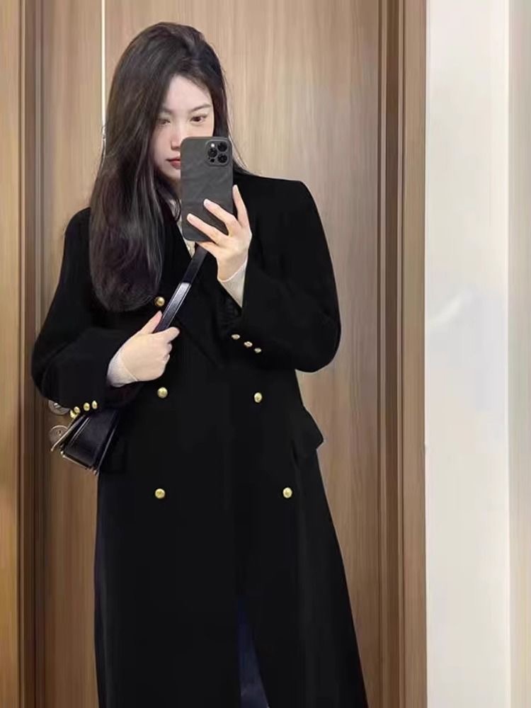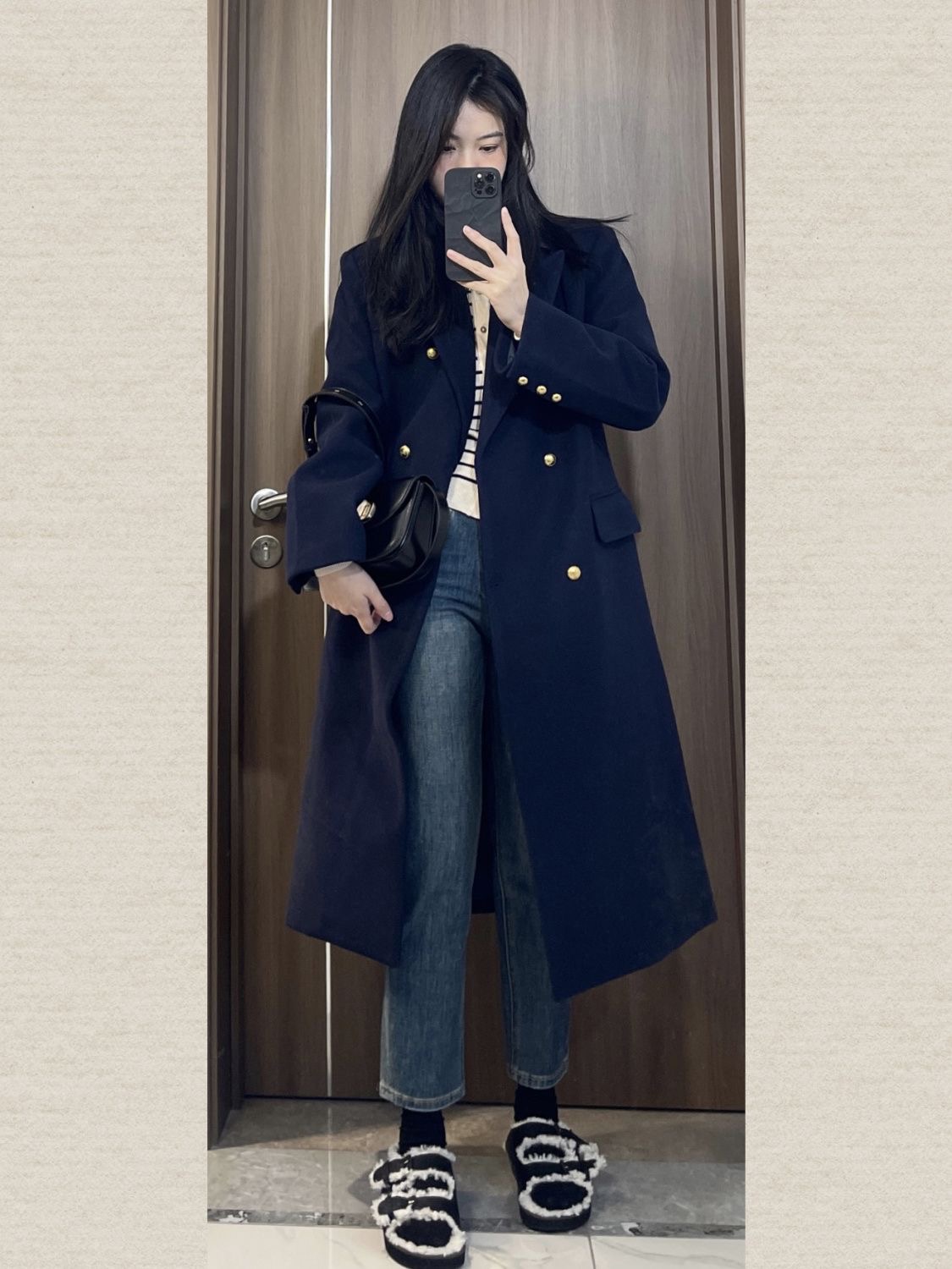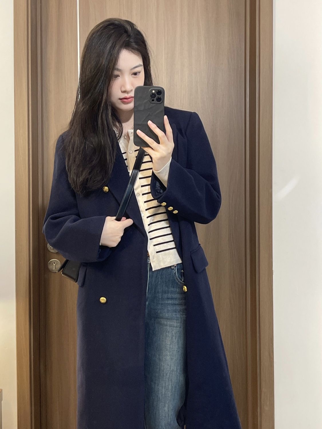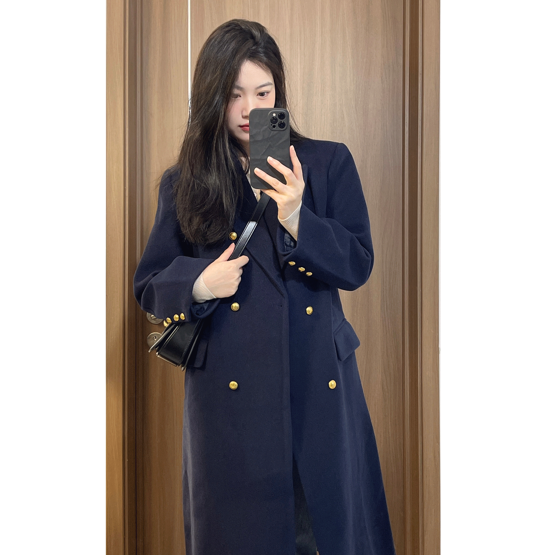 秋冬新款藍色西裝呢子大衣 | 高級感韓系小個子加厚毛呢外套