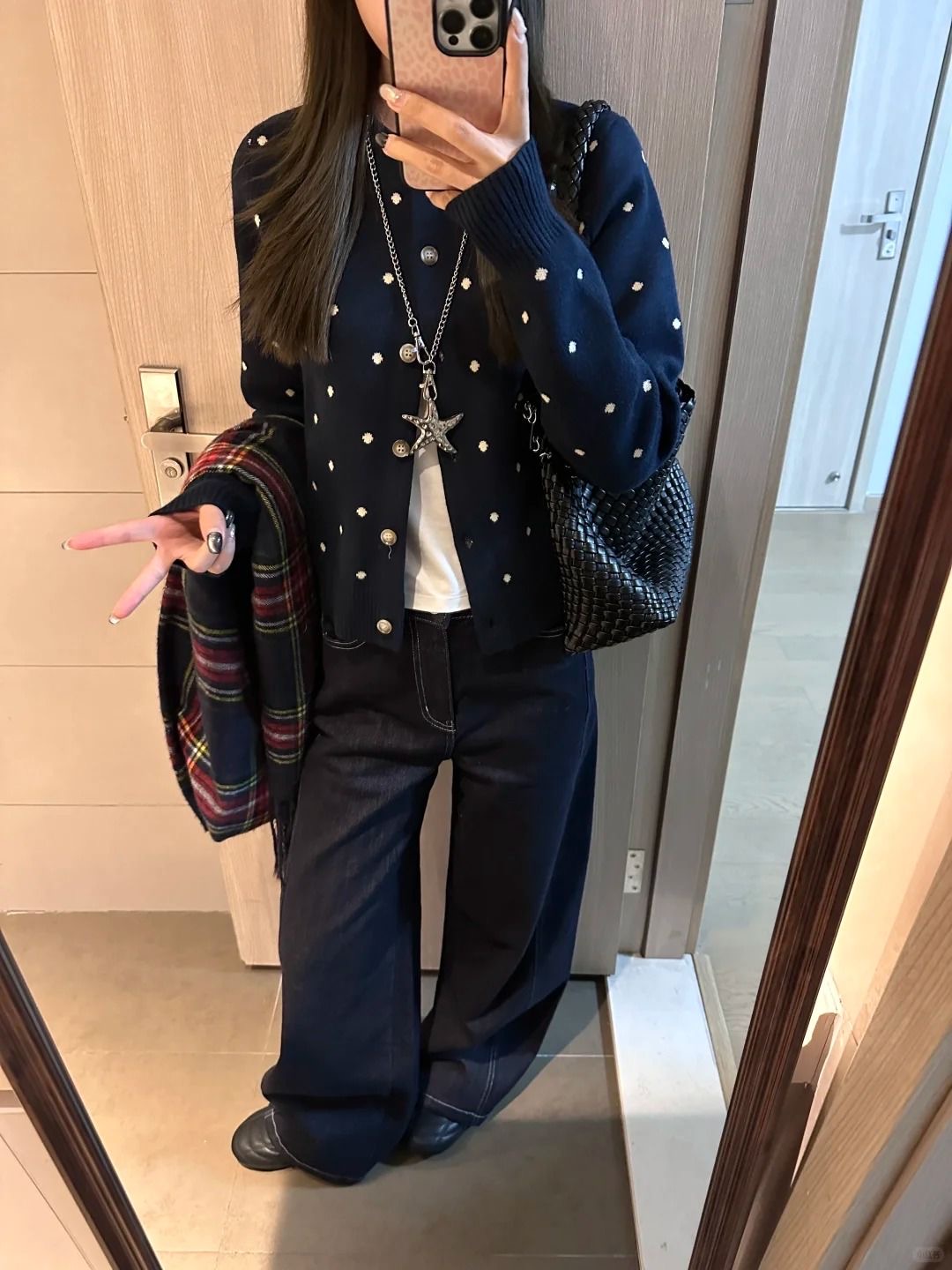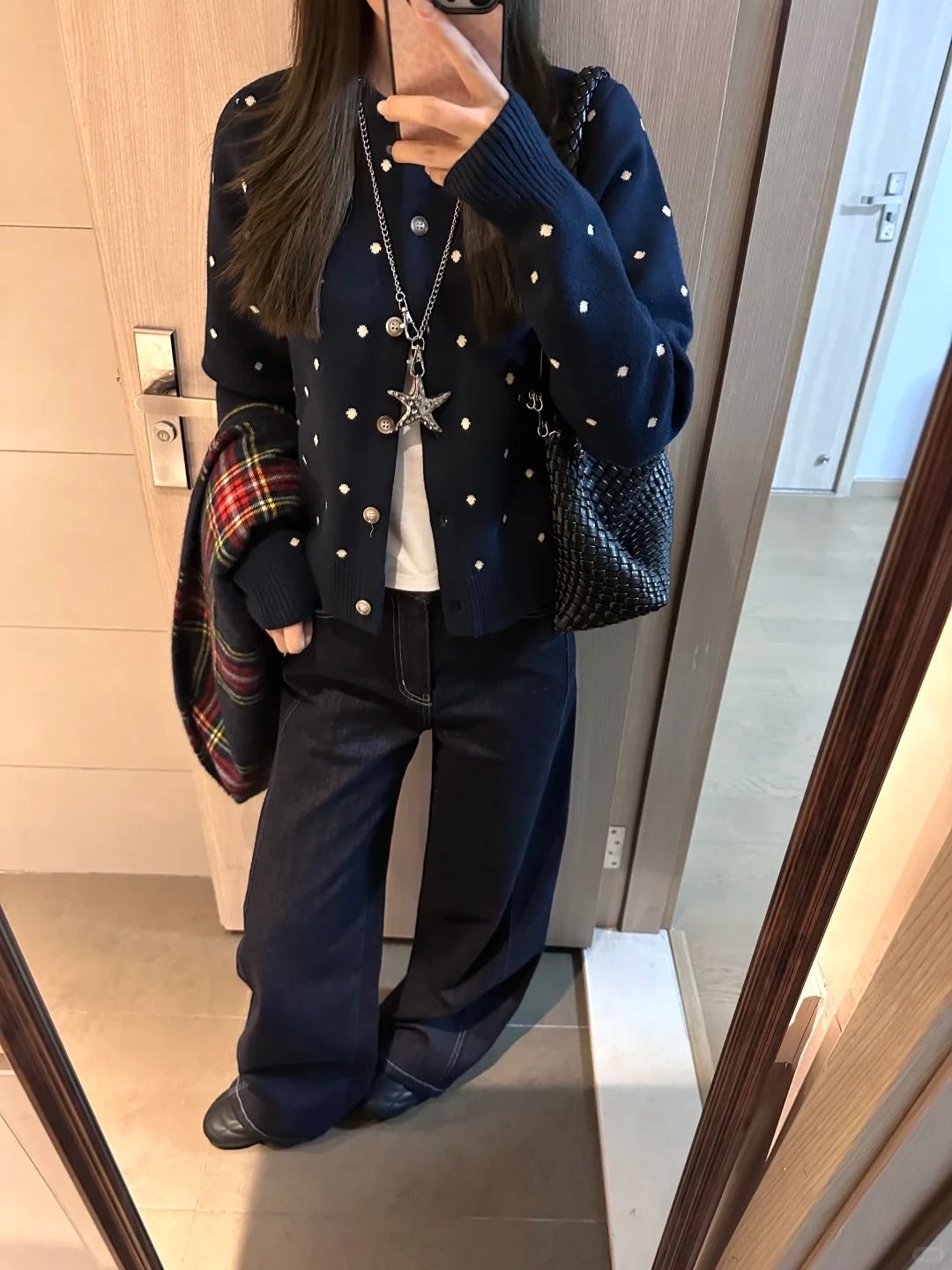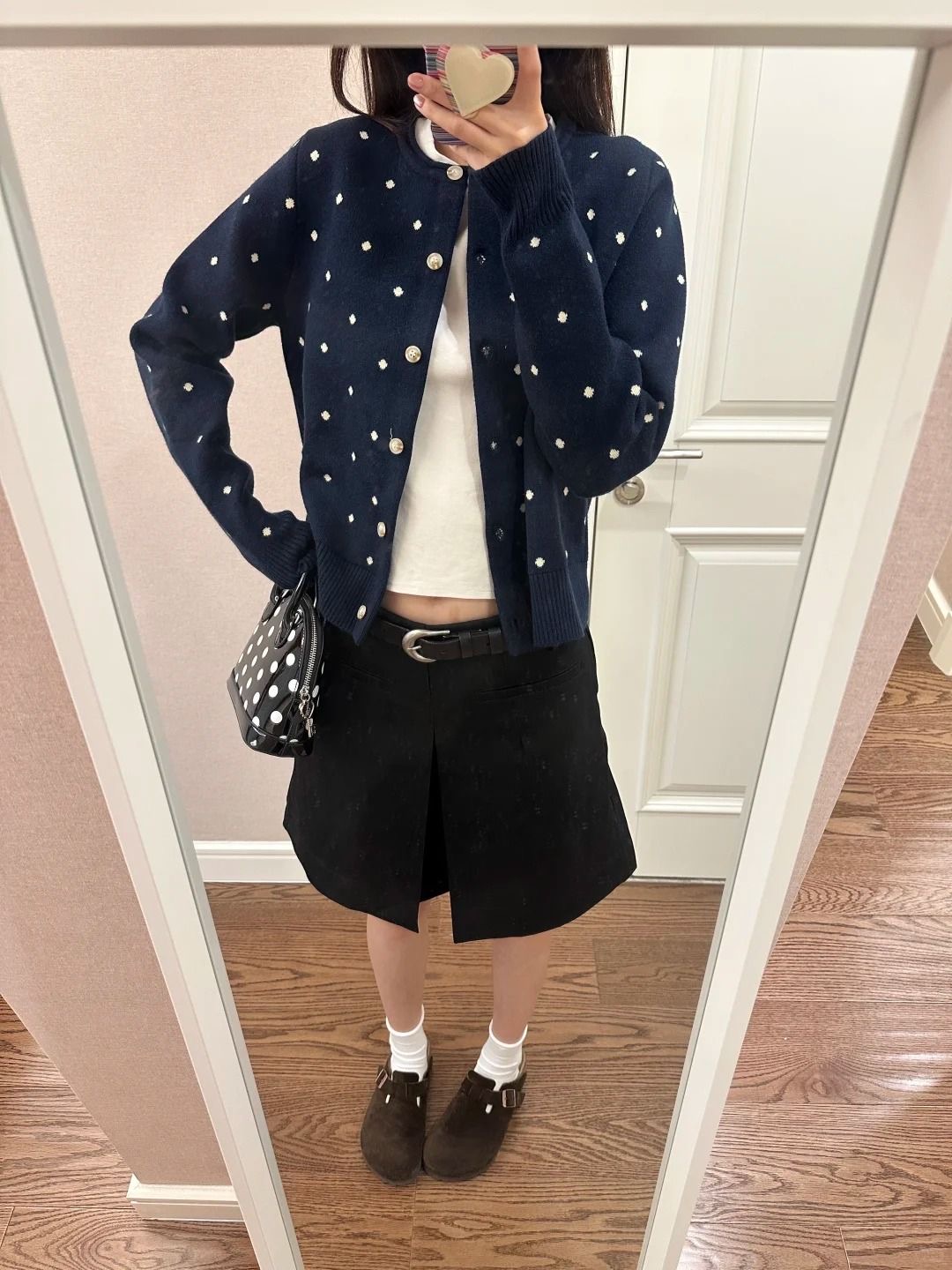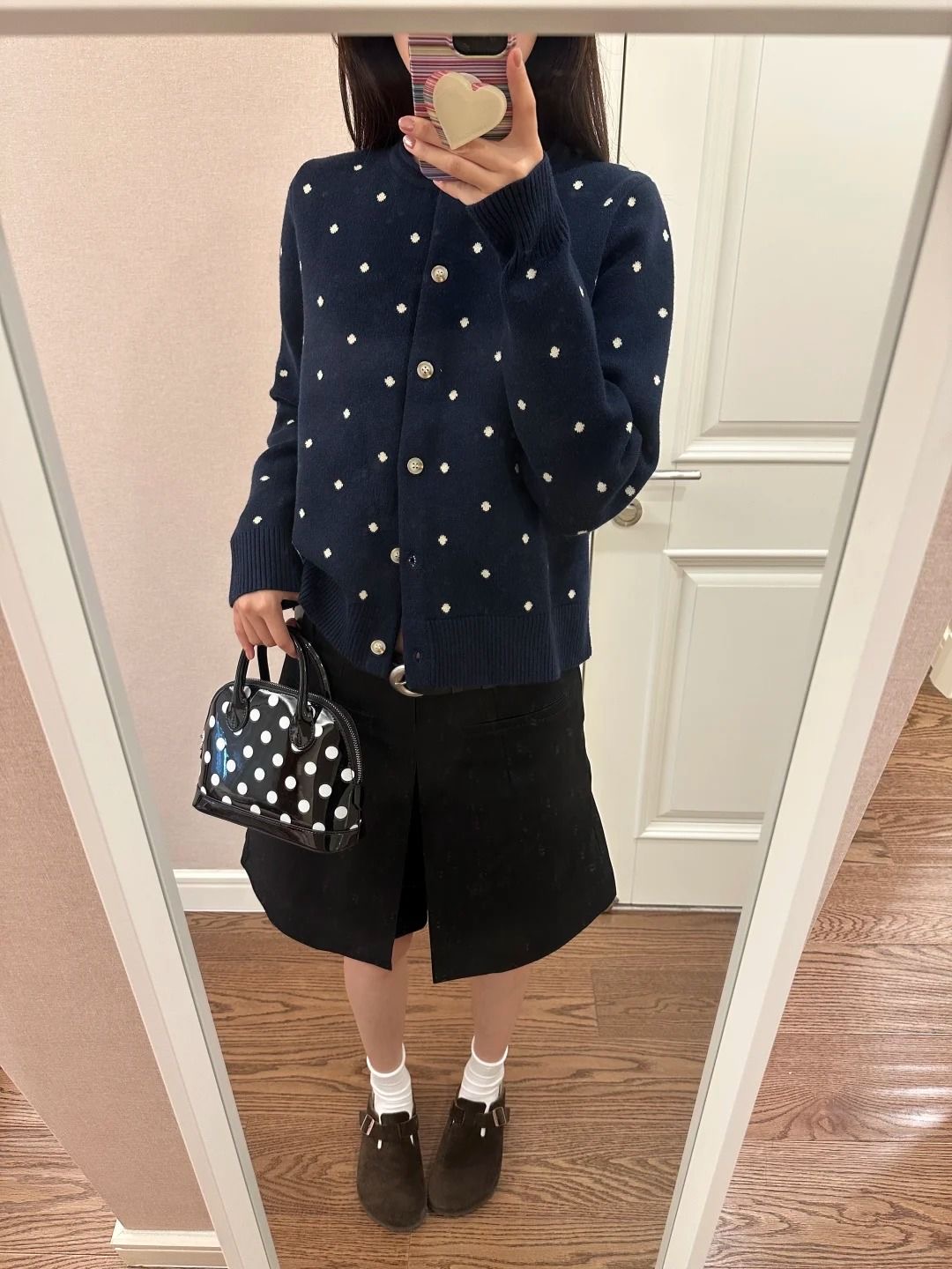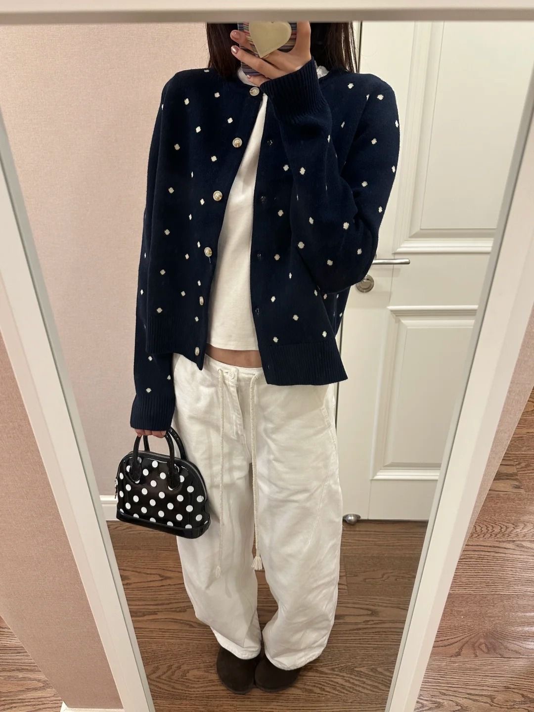 韓系復古提花波點毛衣 | 秋季新款寬鬆針織開衫外套