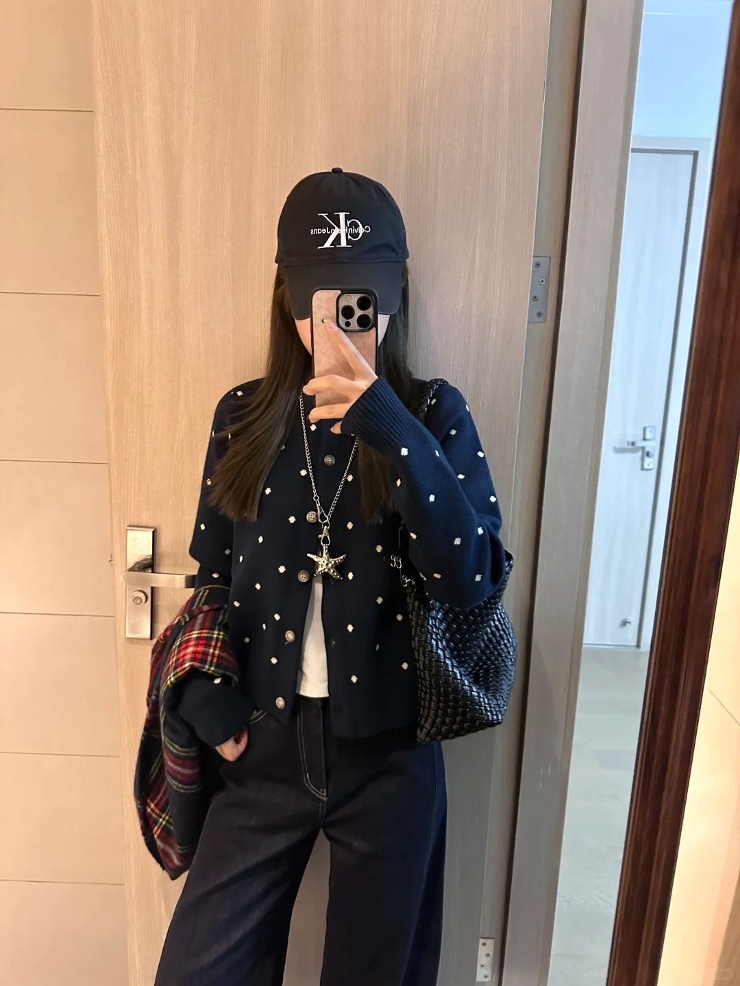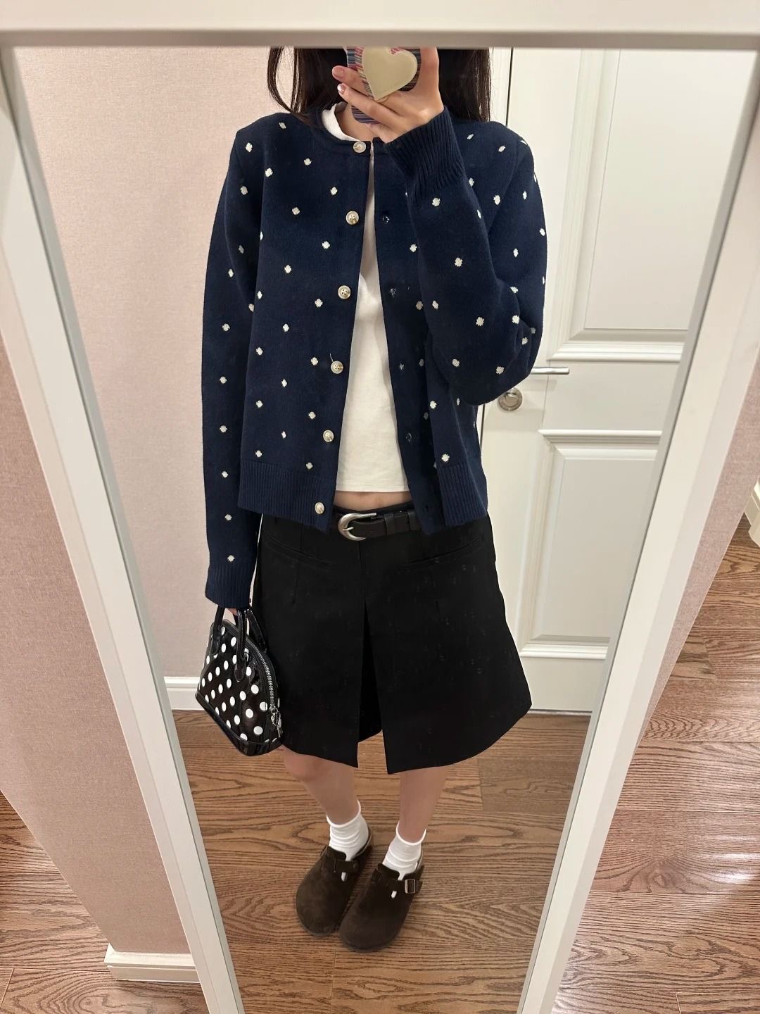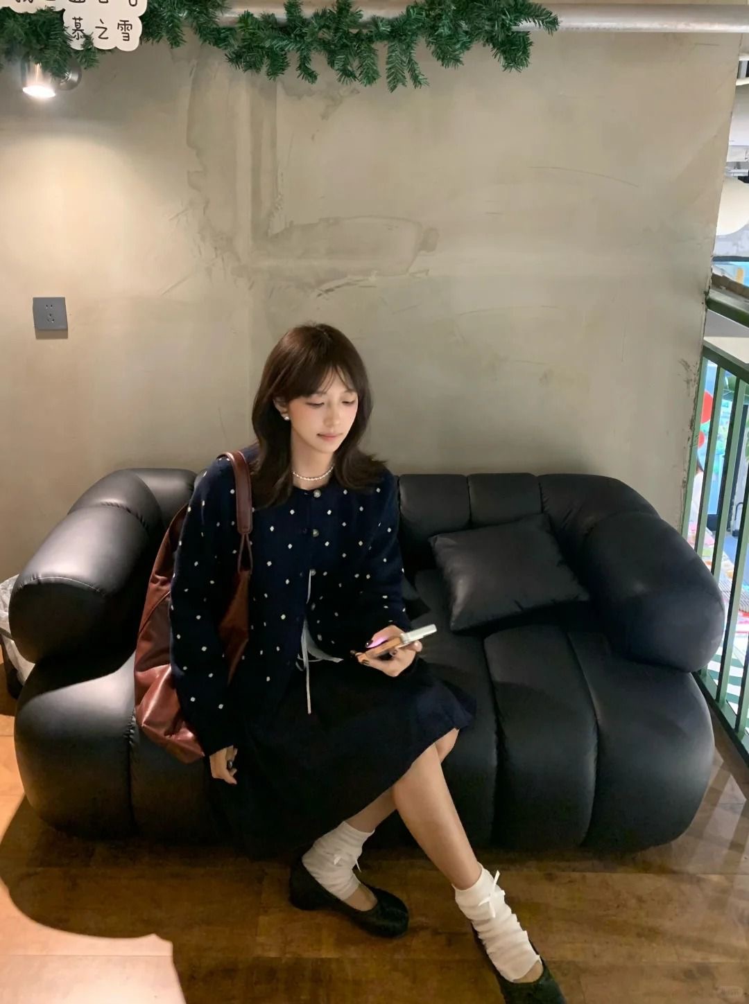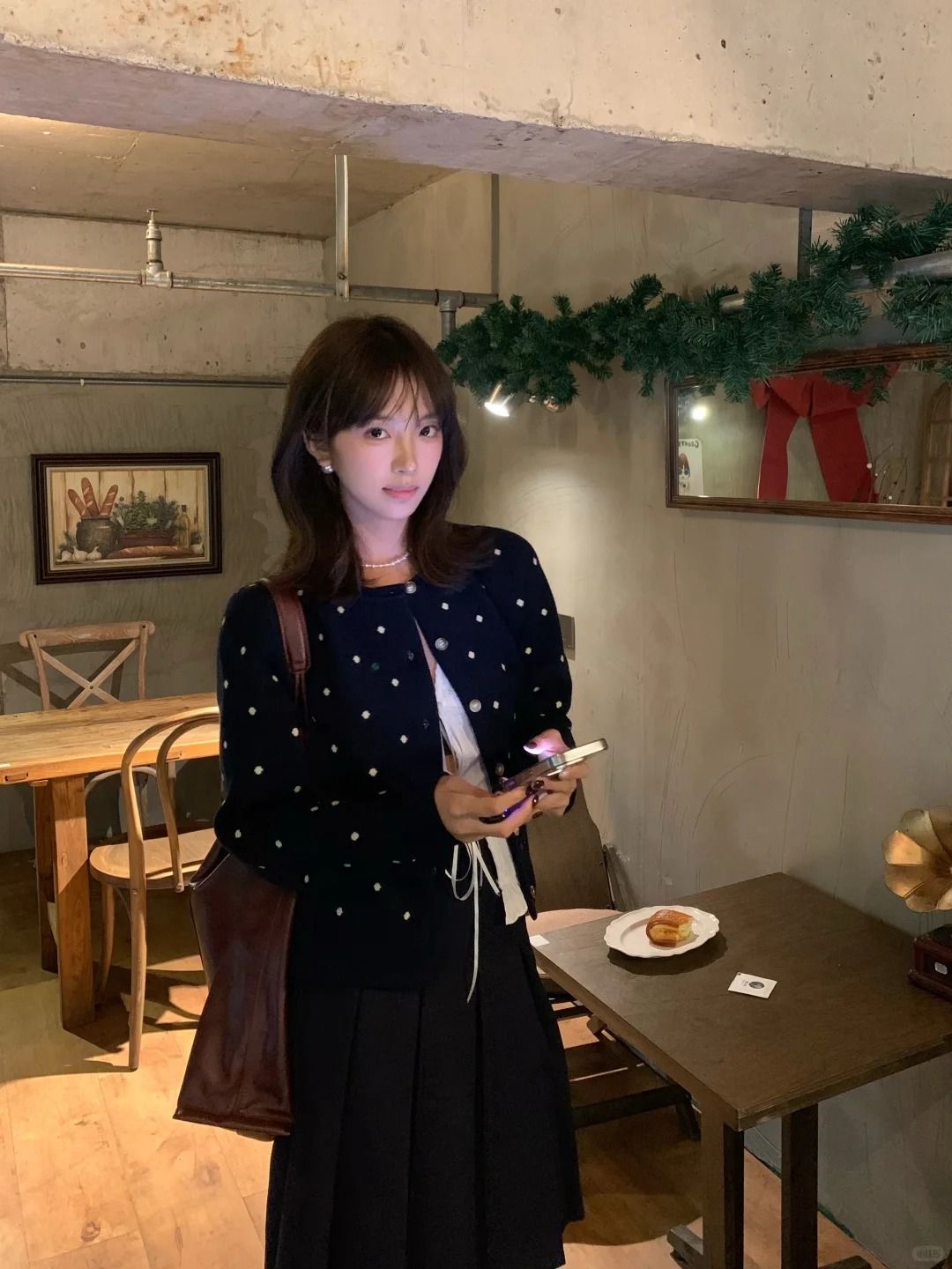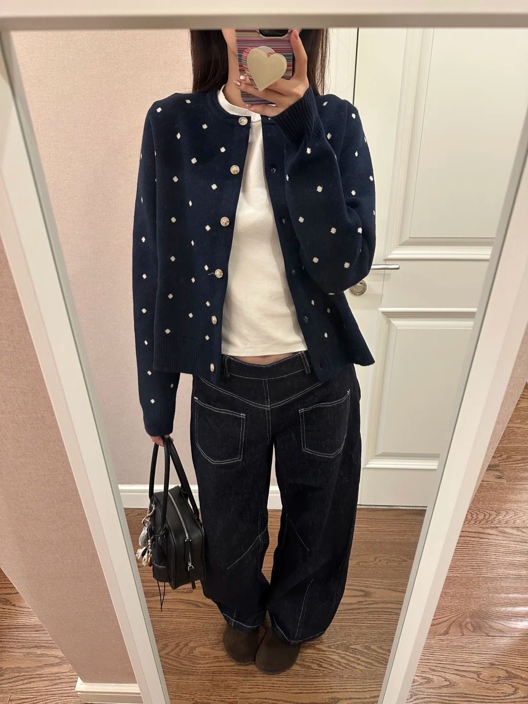 韓系復古提花波點毛衣 | 秋季新款寬鬆針織開衫外套