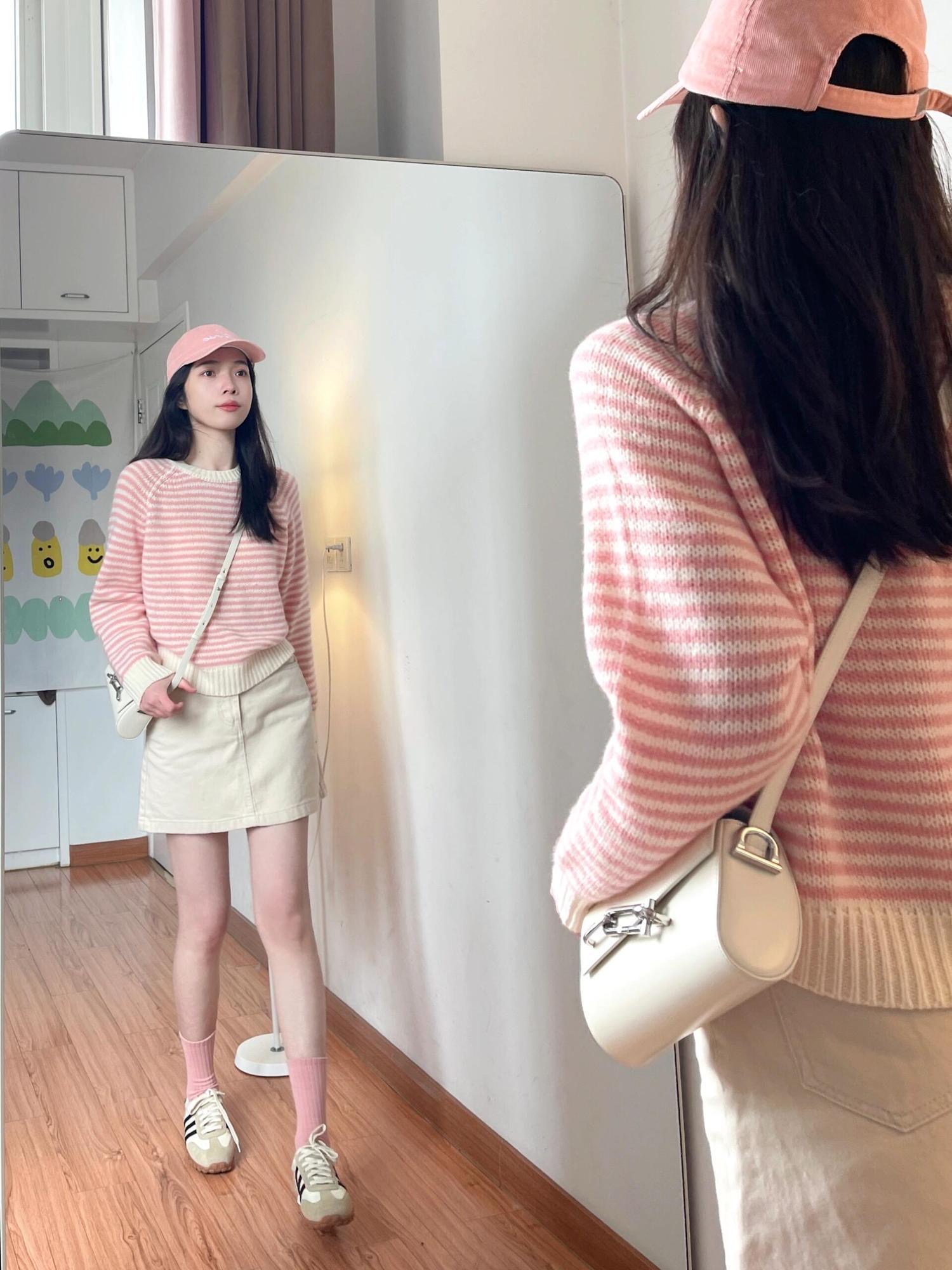 『單件包郵』粉色多巴胺顯嫩針織衫 | 秋冬季慵懶風時髦氣質上衣 | 寬鬆顯瘦毛線衣