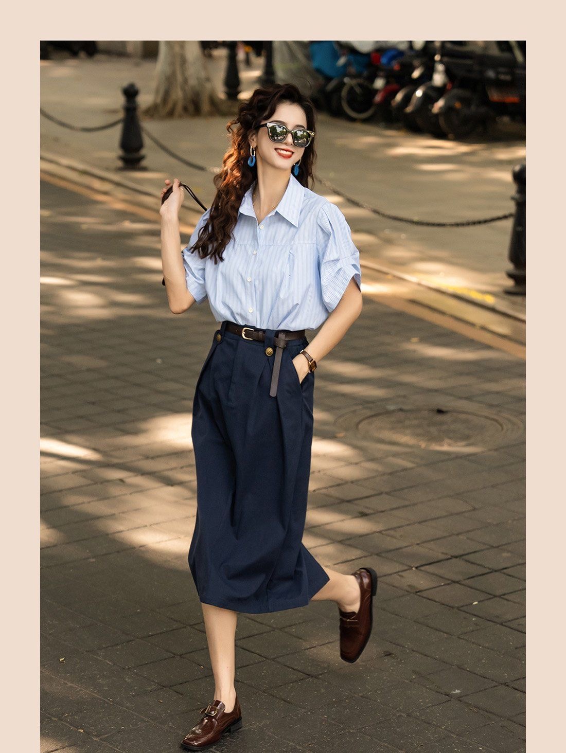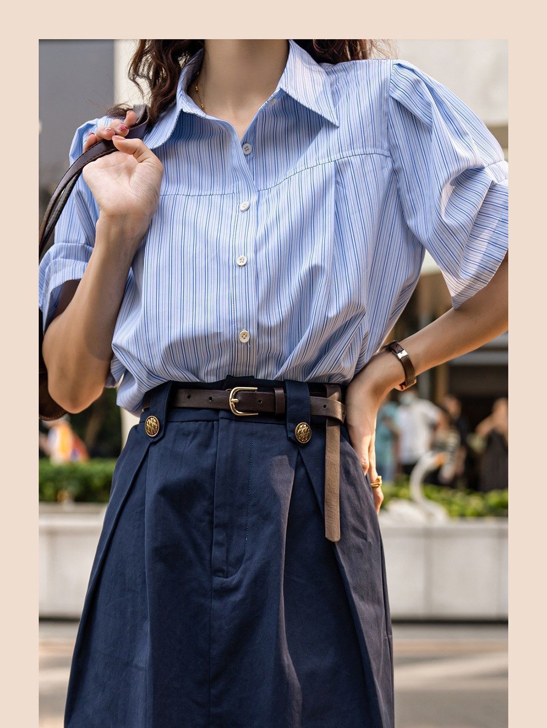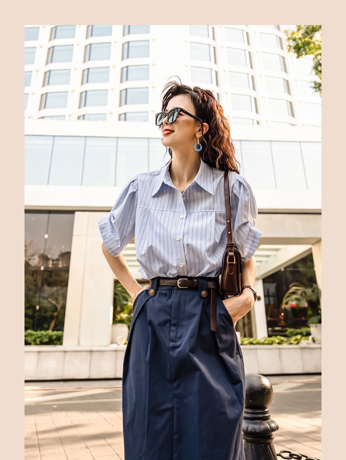 設計感藍色兩件套女 | 夏季新款法式通勤襯衫半身裙套裝潮