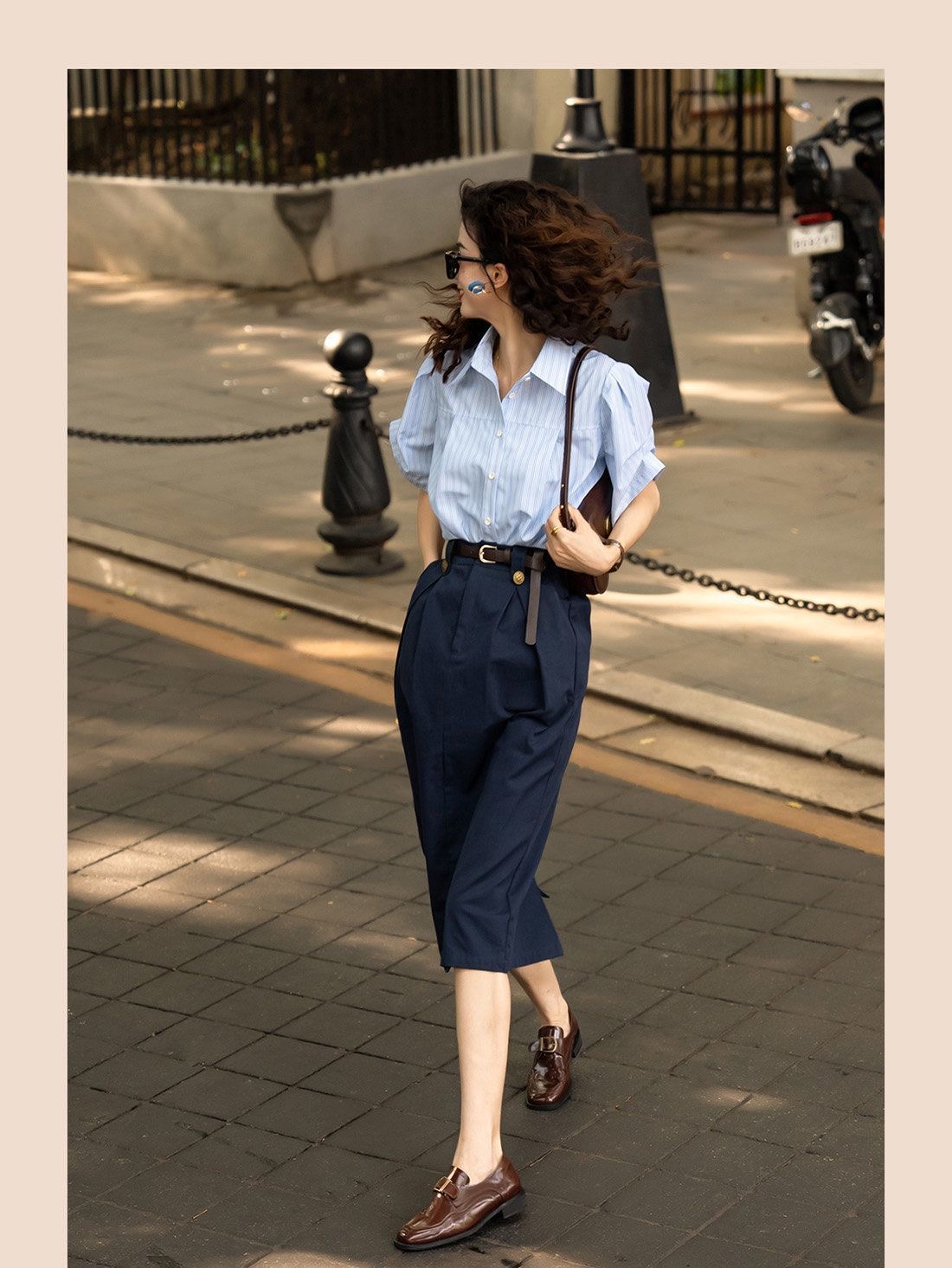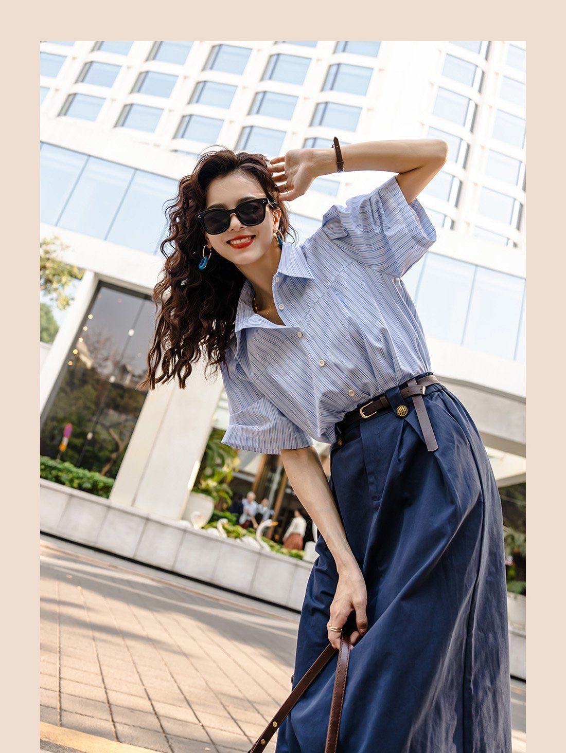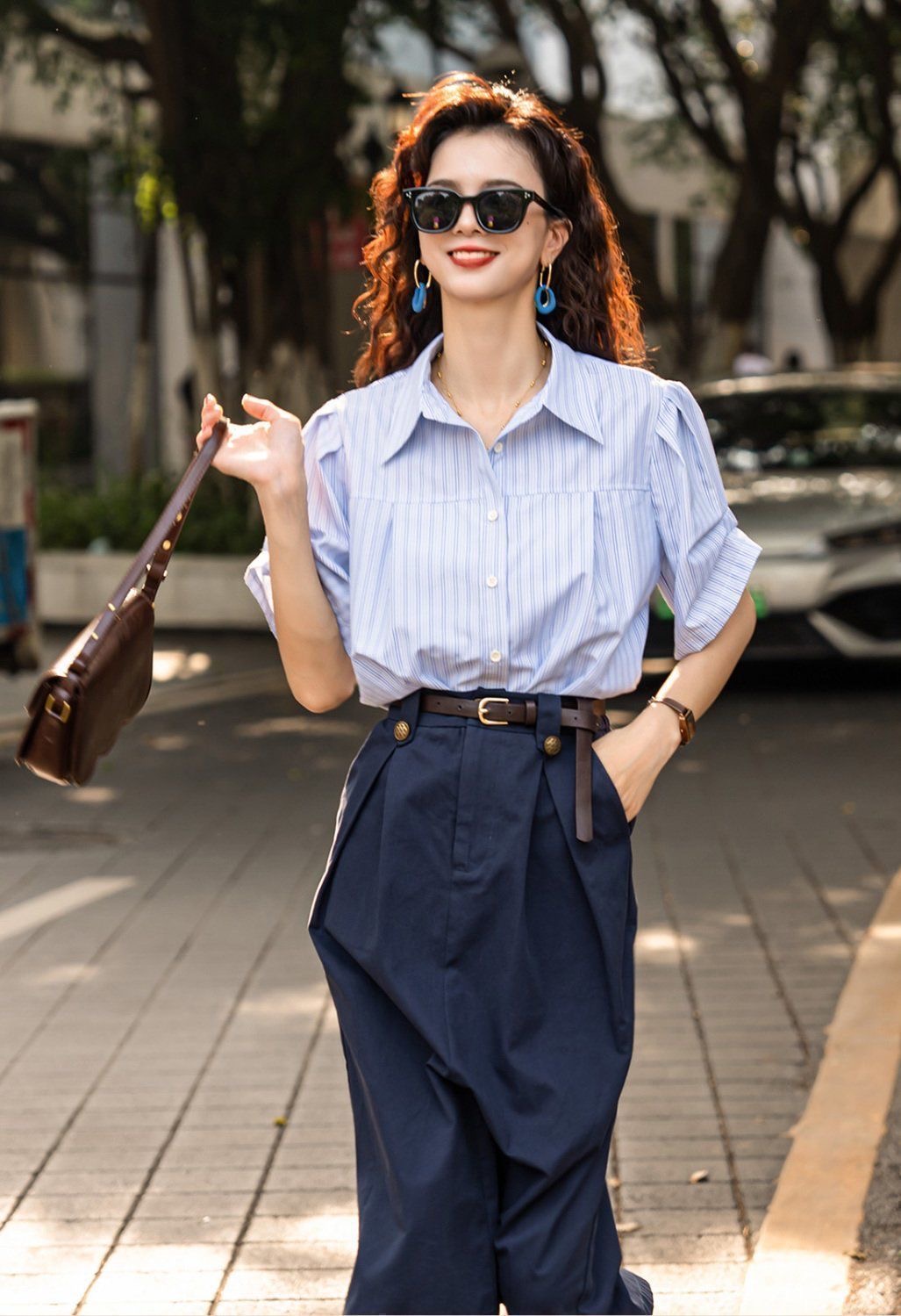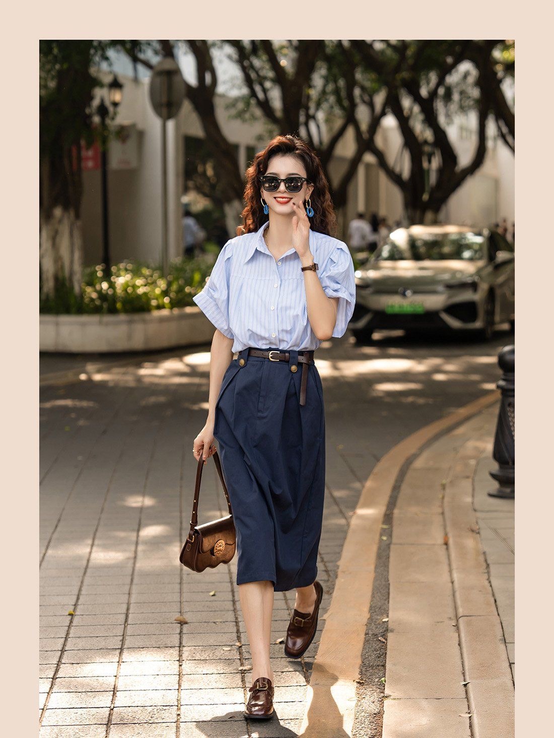 設計感藍色兩件套女 | 夏季新款法式通勤襯衫半身裙套裝潮