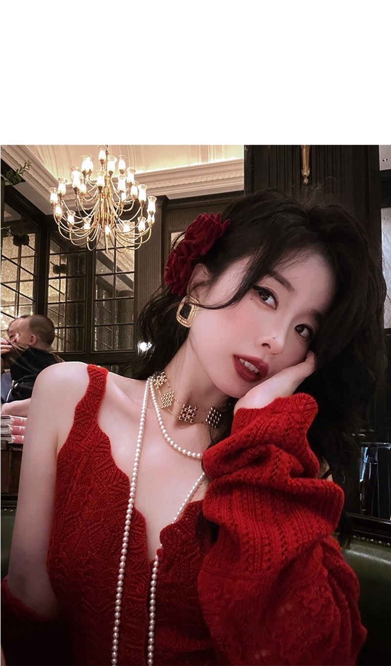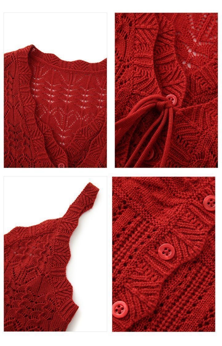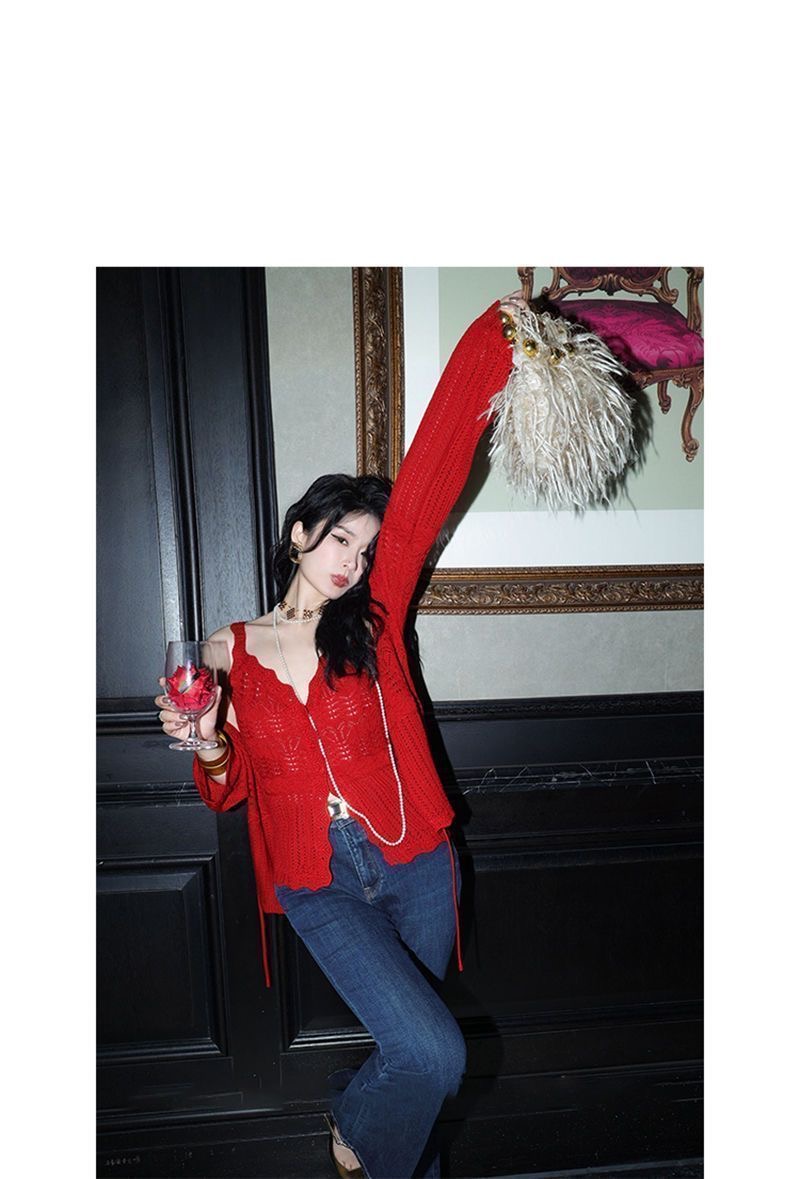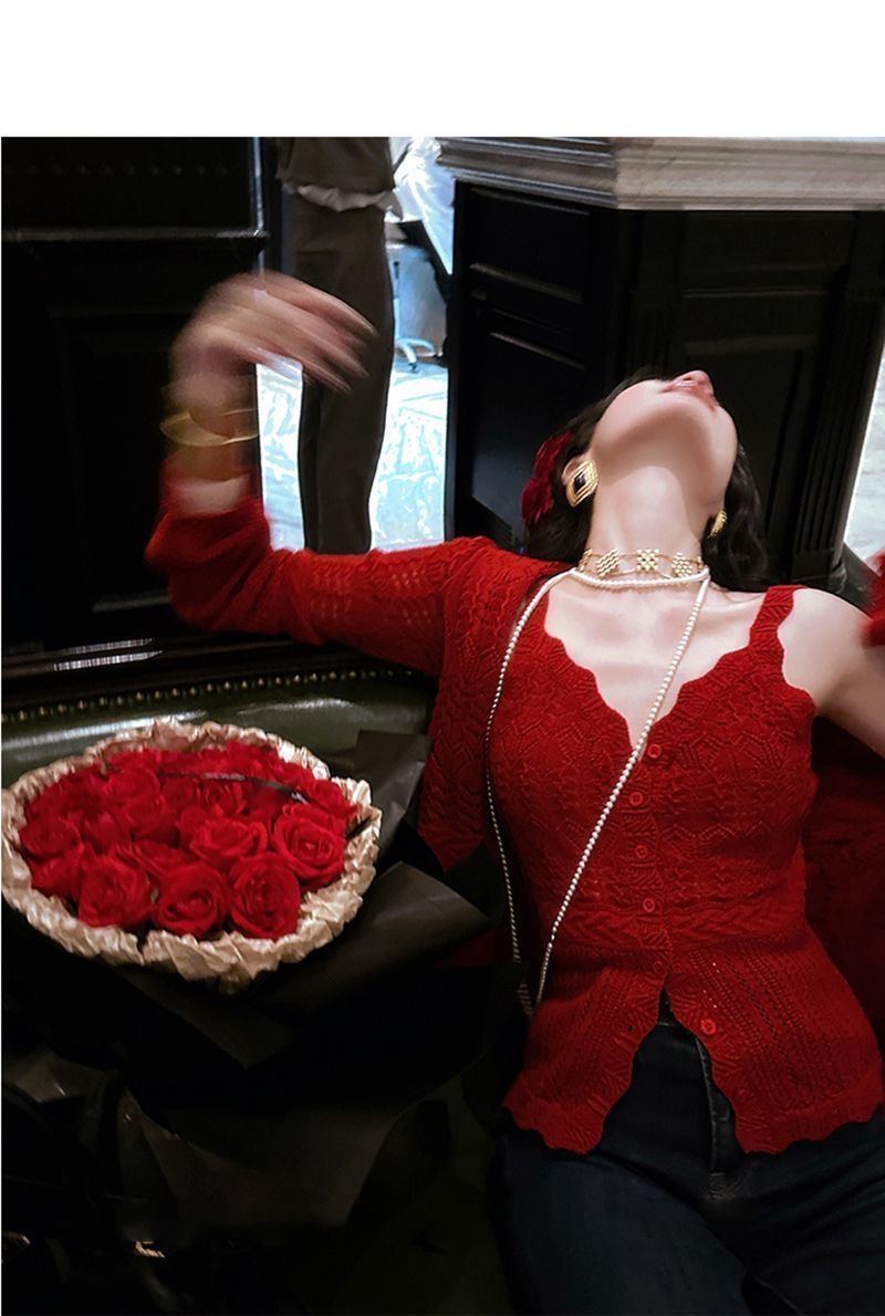 秋季新款 V 領微喇兩件組 | 法式立體提花吊帶 + 開衫時尚套組