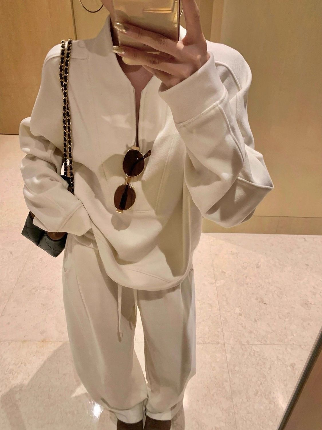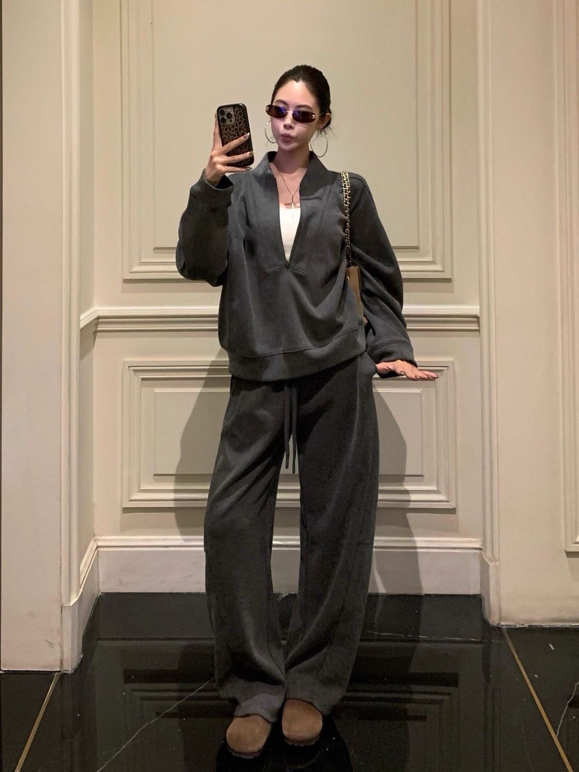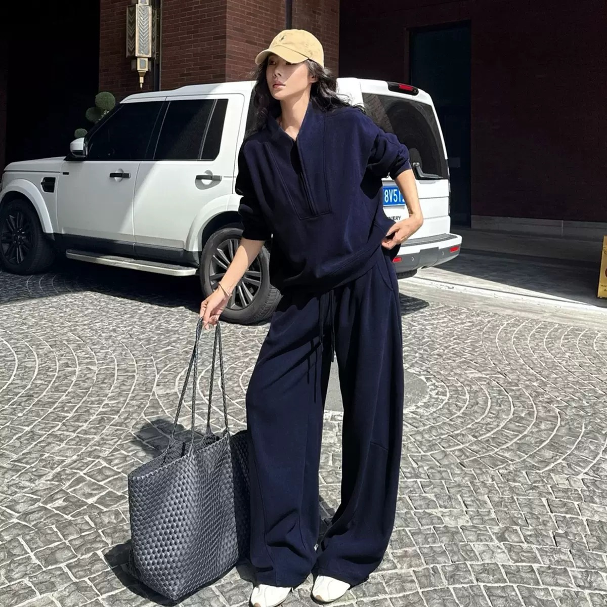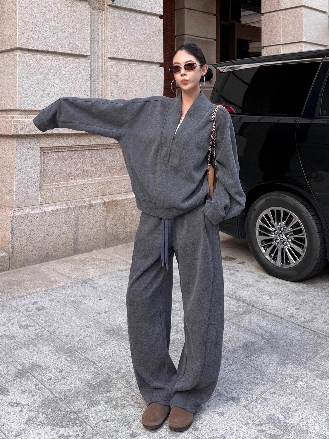 秋冬老錢風套裝|衛衣 + 闊腿褲兩件組 | 高級感直接拉滿✨
