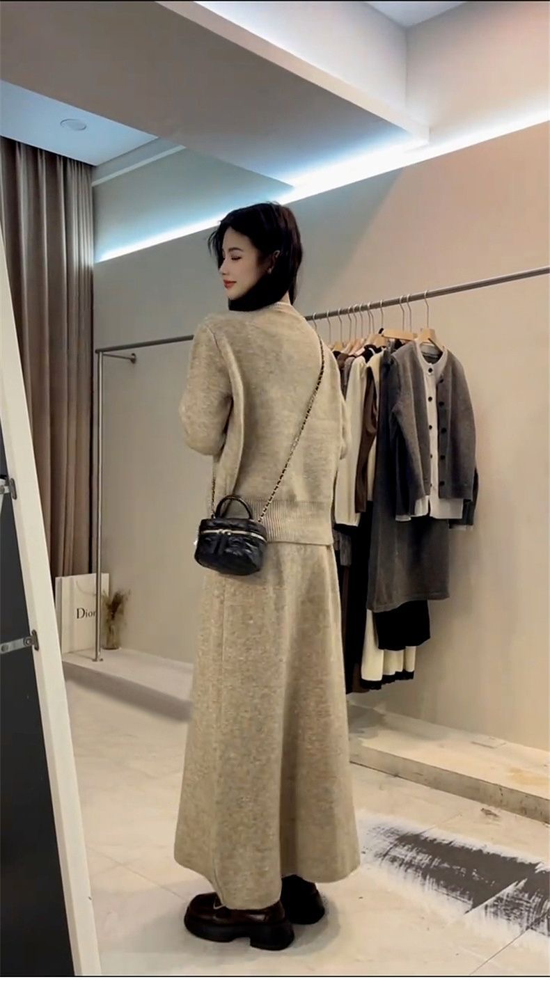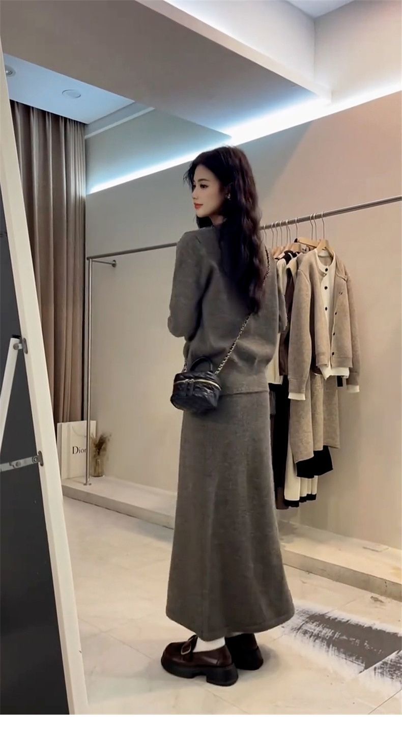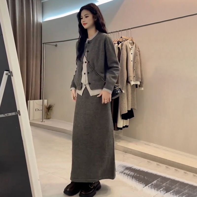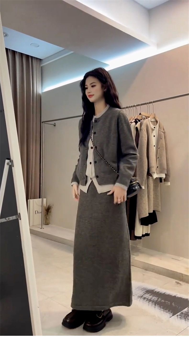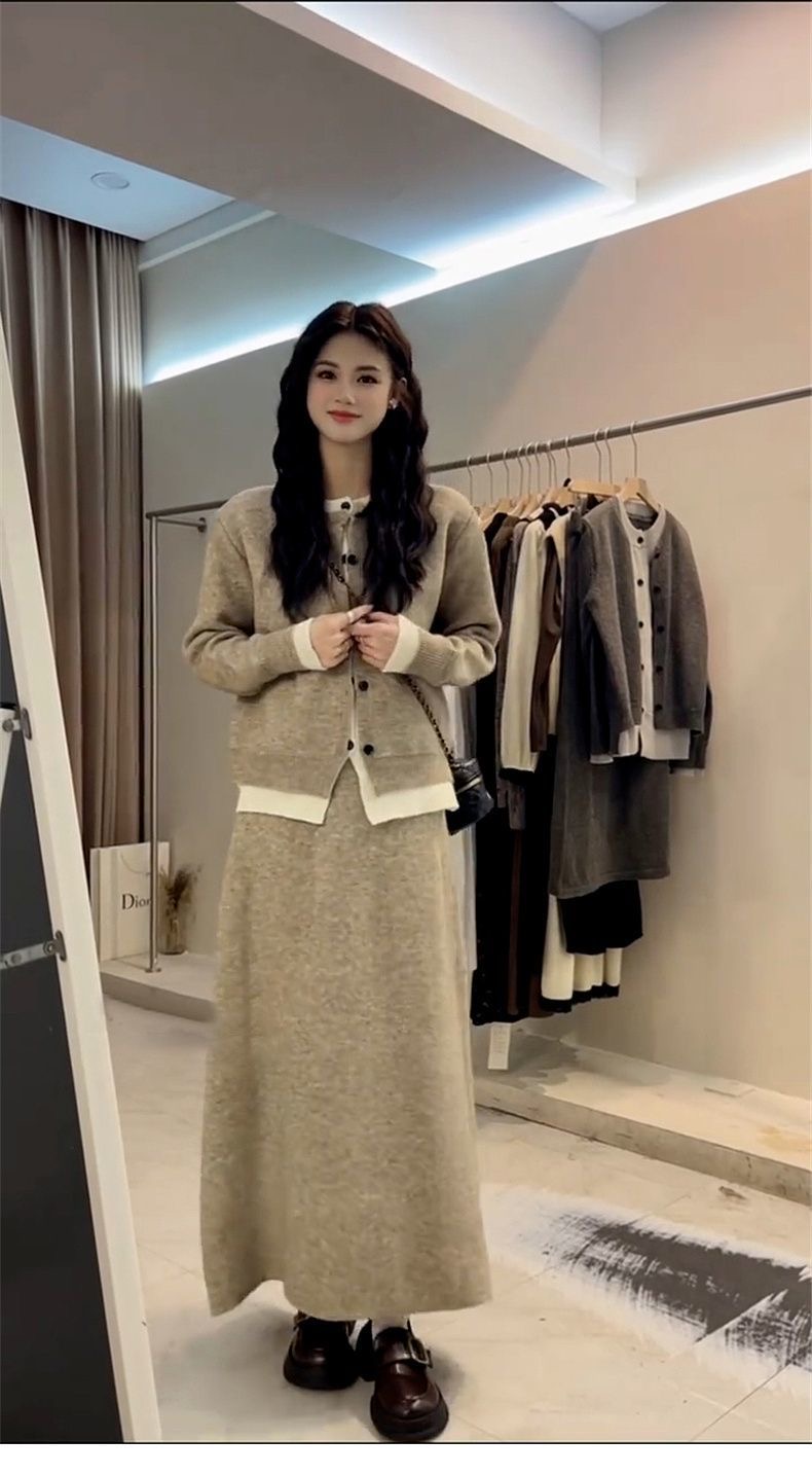 韓系高級感套裝|入秋必收 | 假兩件針織拼接減齡半身裙兩件組