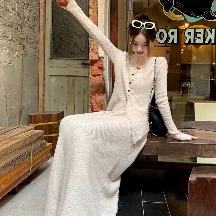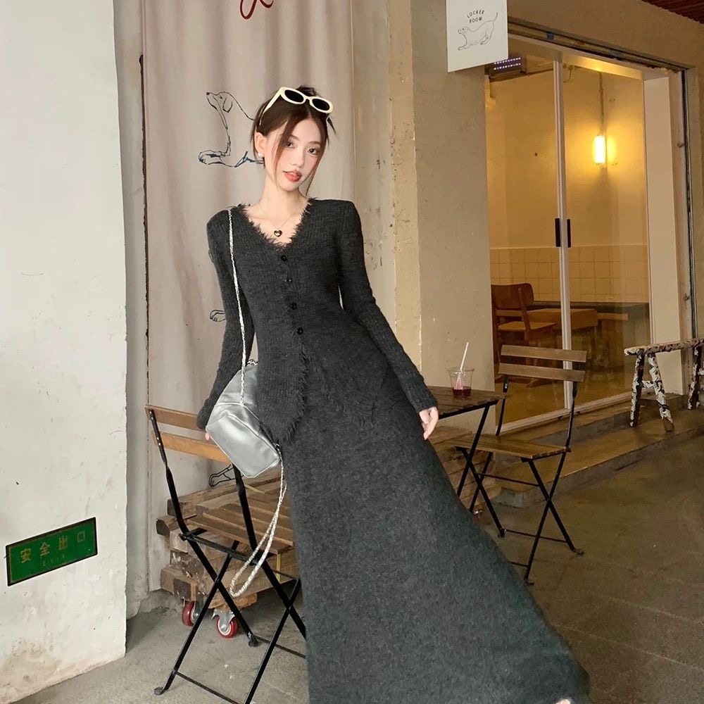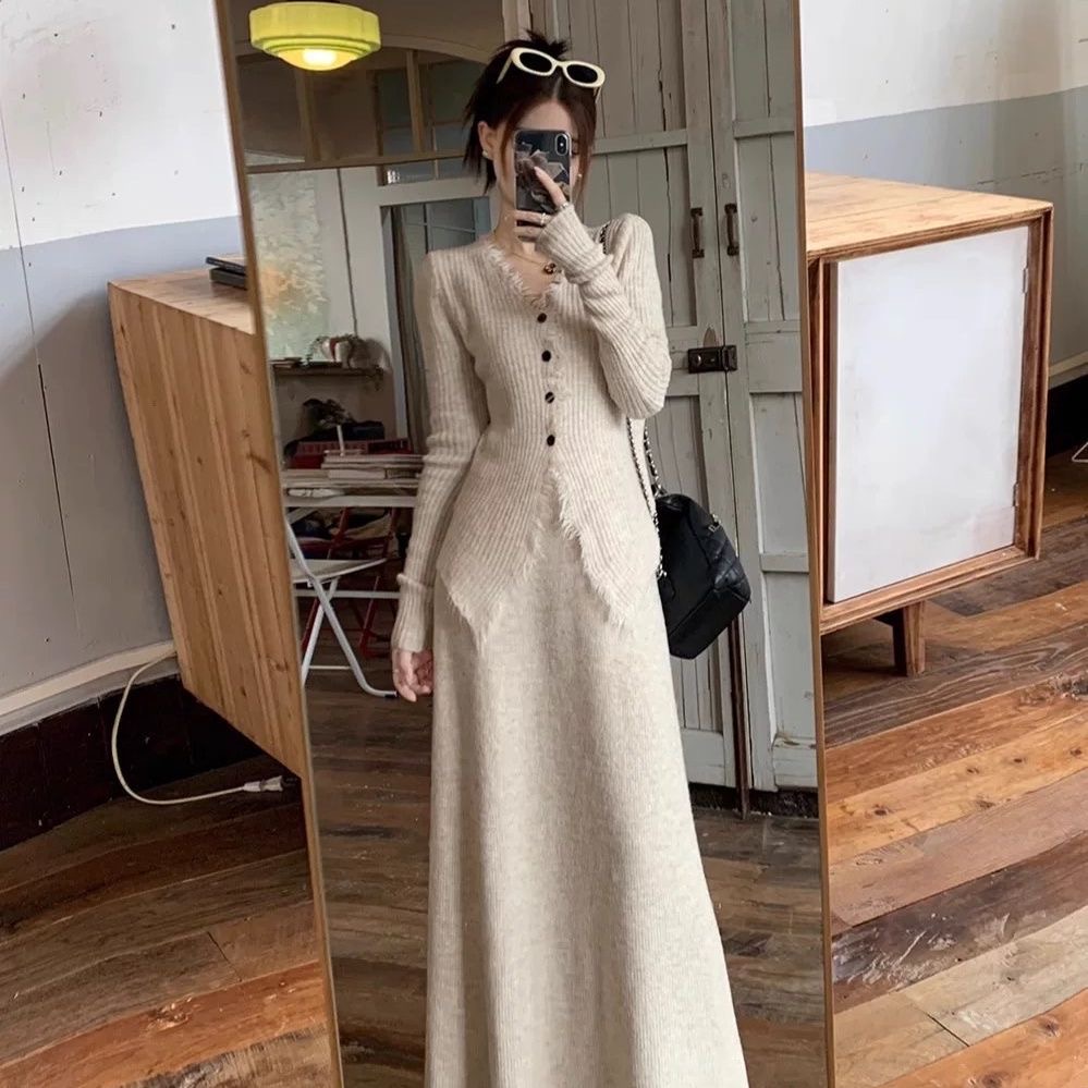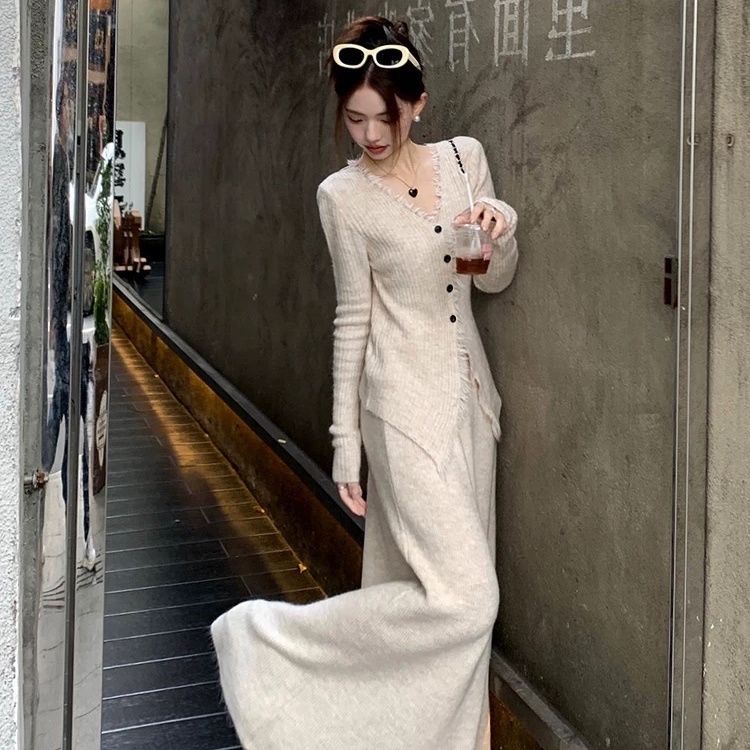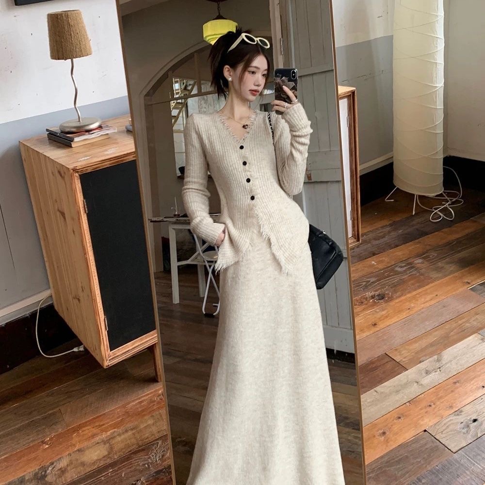 早秋韓系針織套裝|溫柔風法式上衣 + 半身裙 兩件組必收🍂
