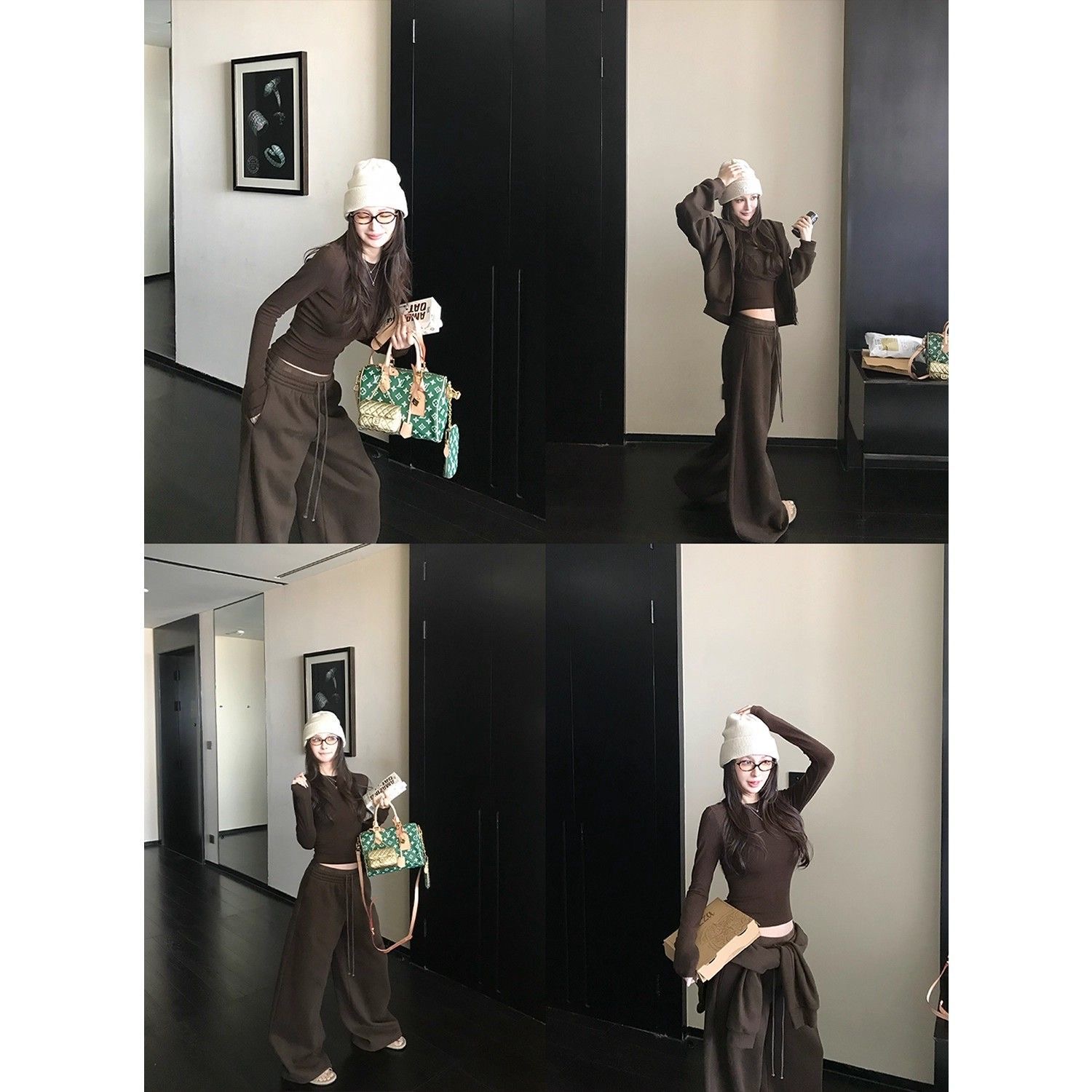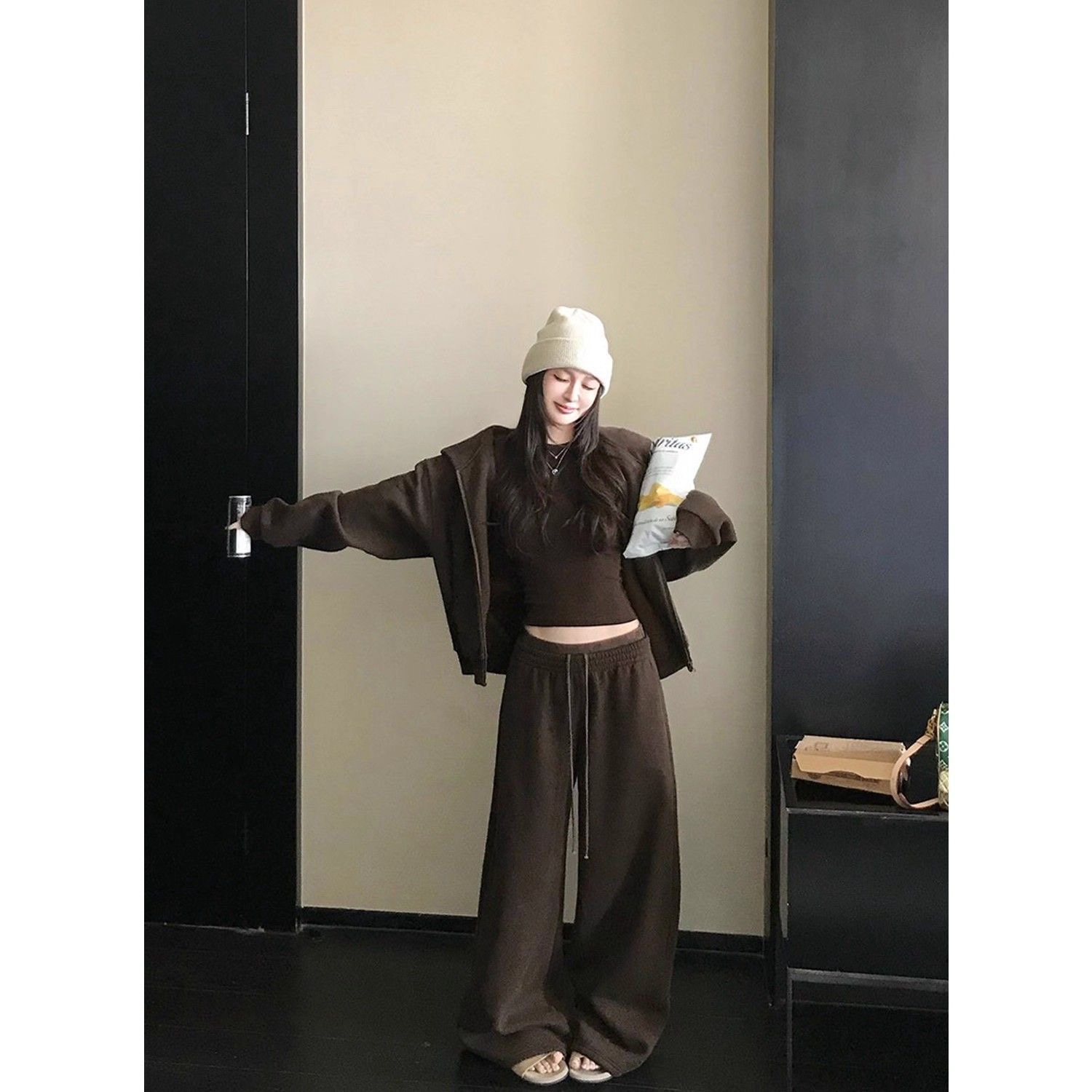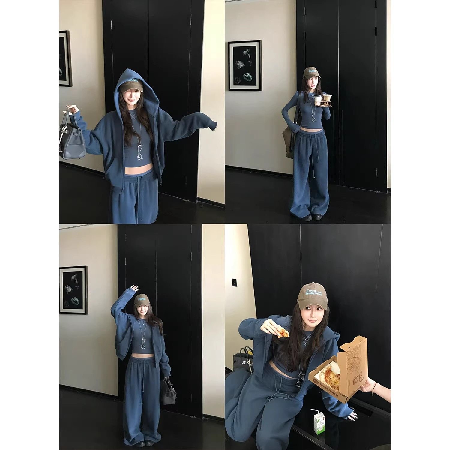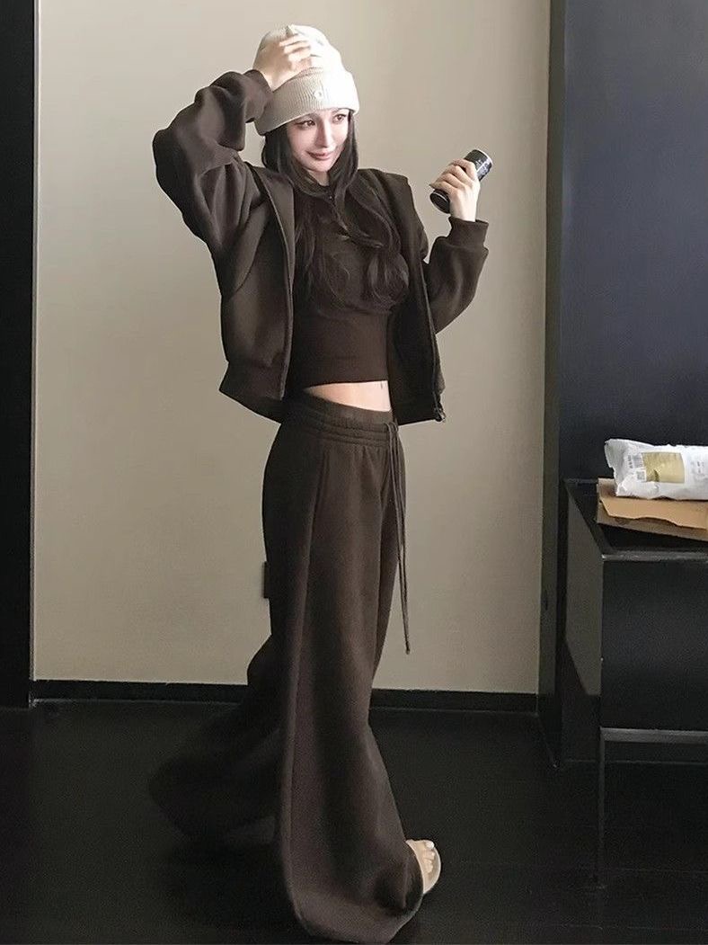 2025 新款|韓系辣妹連帽套裝 修身顯瘦加絨拉毛休閒衛衣褲