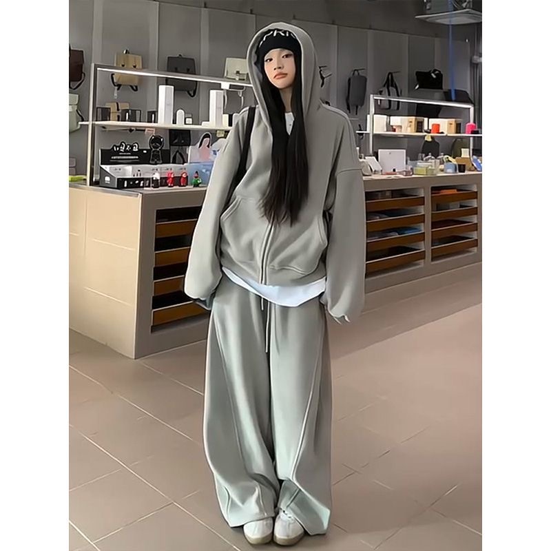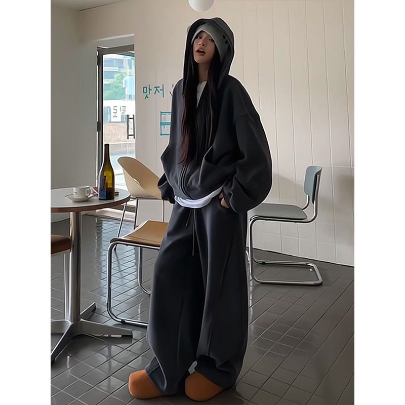 雙面奧粒絨 490克高克重連帽衛衣外套加厚闊腿褲兩件套