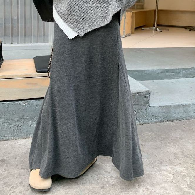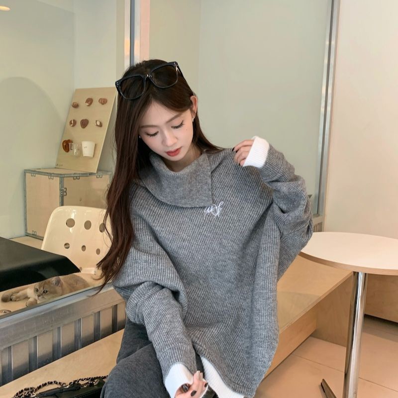 秋冬新款|淑女風斗篷上衣 + 毛呢長裙兩件組 溫柔顯氣質針織套裝