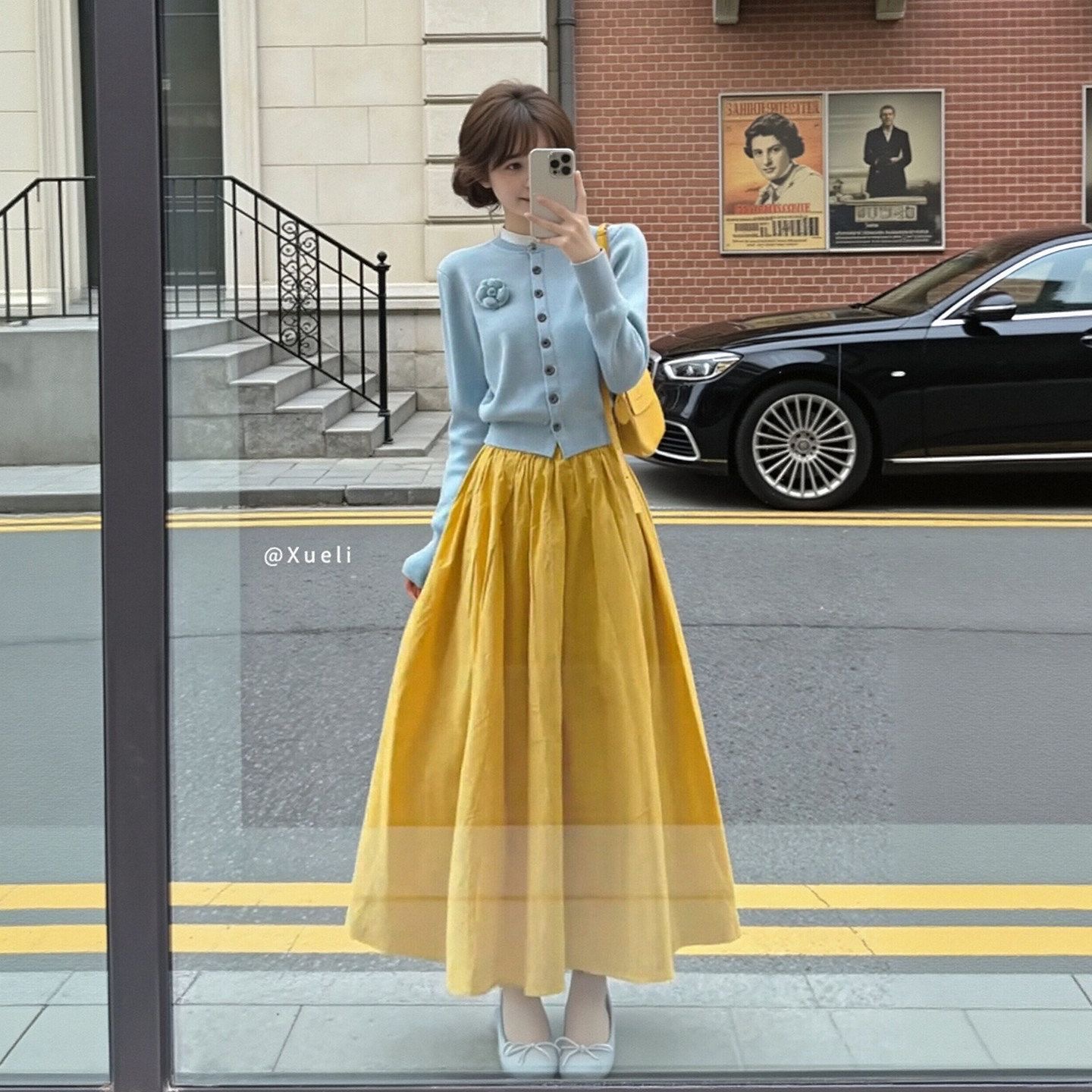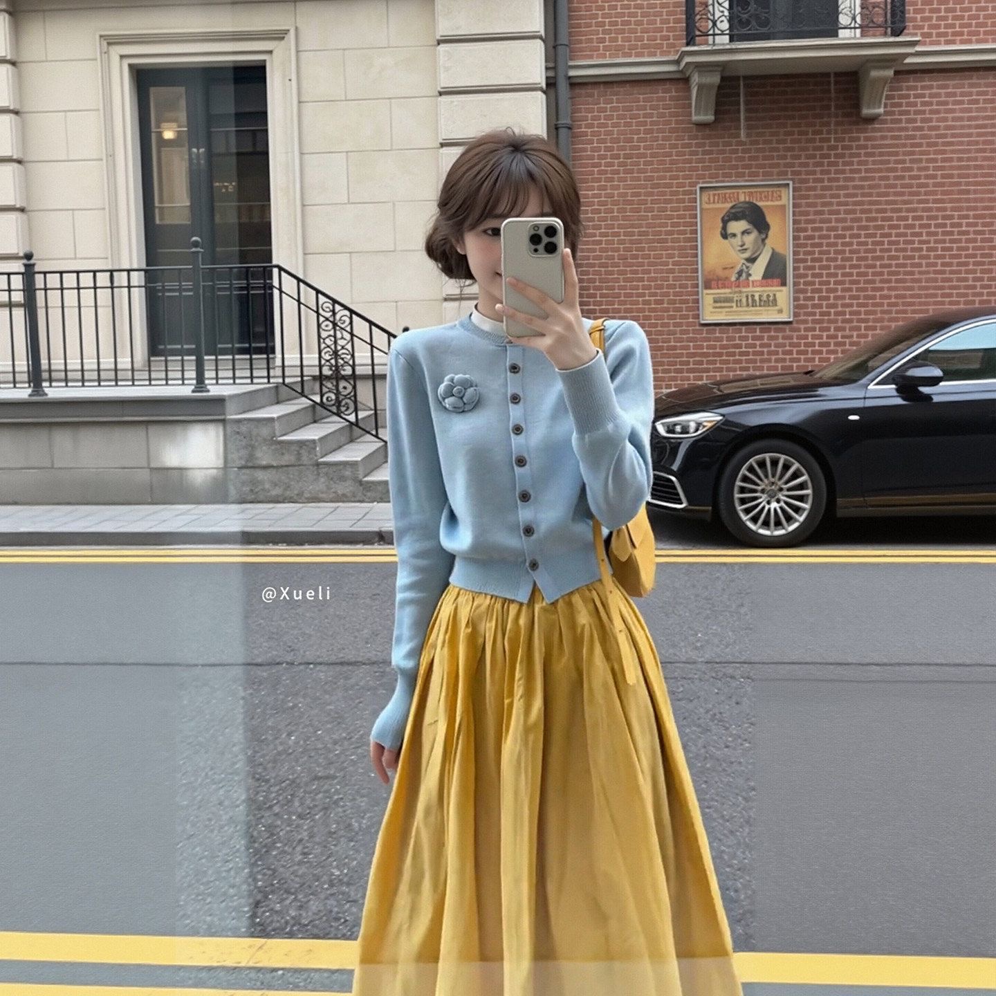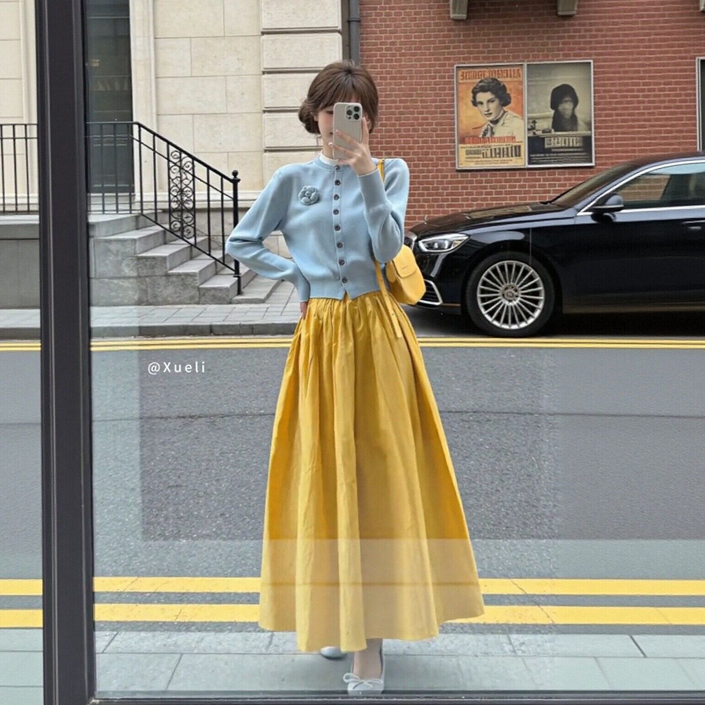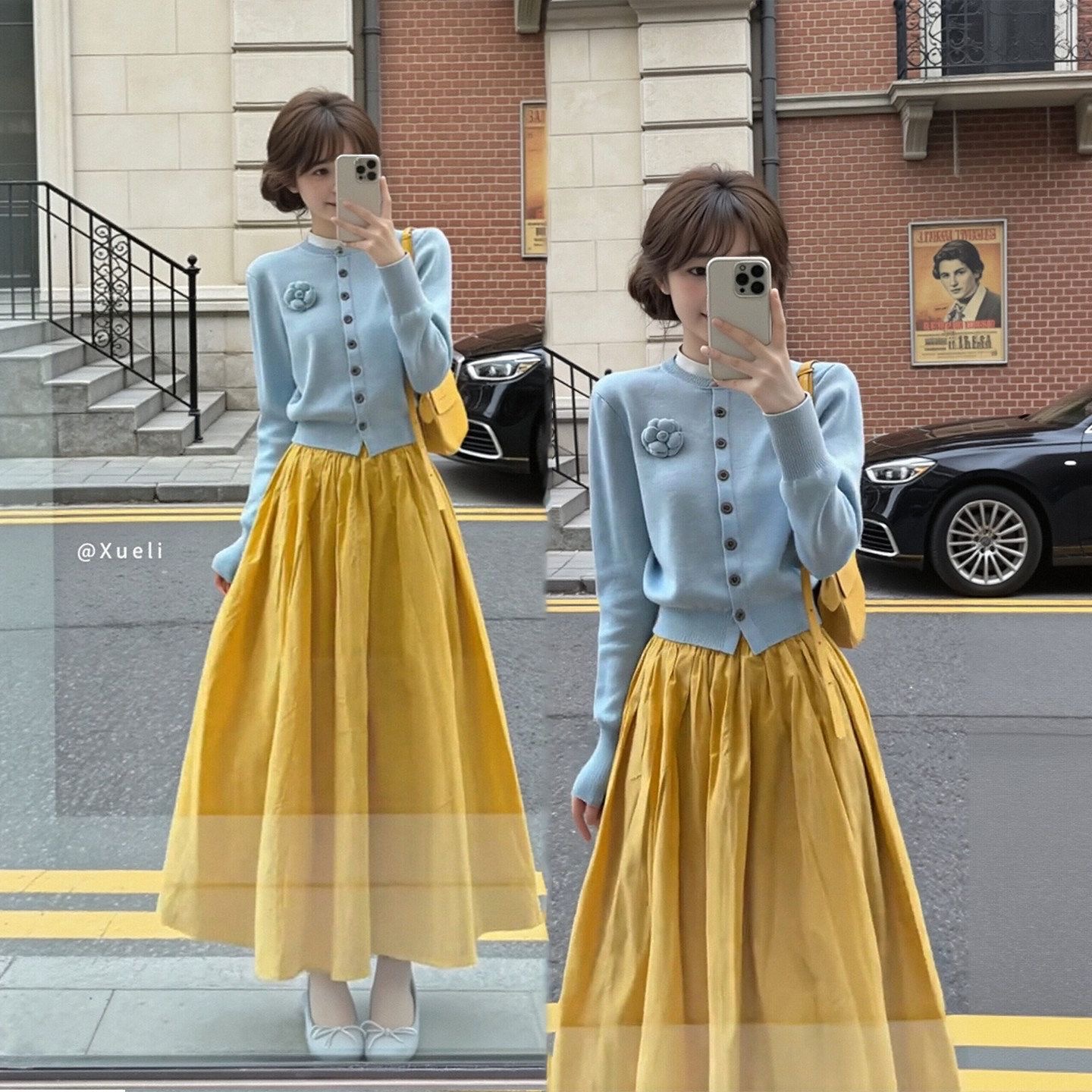 2026 初春穿搭一整套|超火獨特絕美假兩件針織開衫 + 半身裙套裝