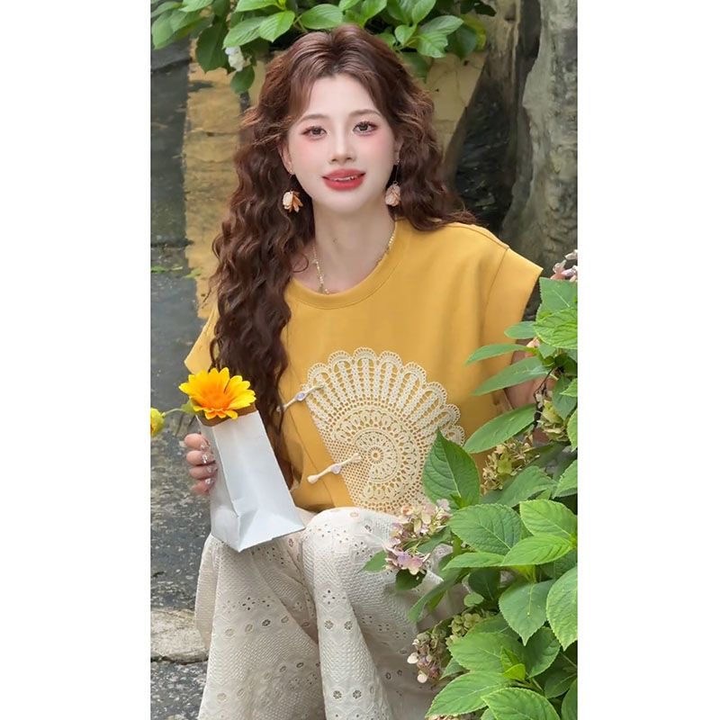 夏季新款 復古甜美減齡港風兩件組 | 設計感寬鬆上衣 + 長褲女款套裝