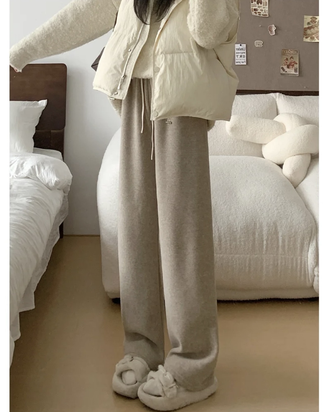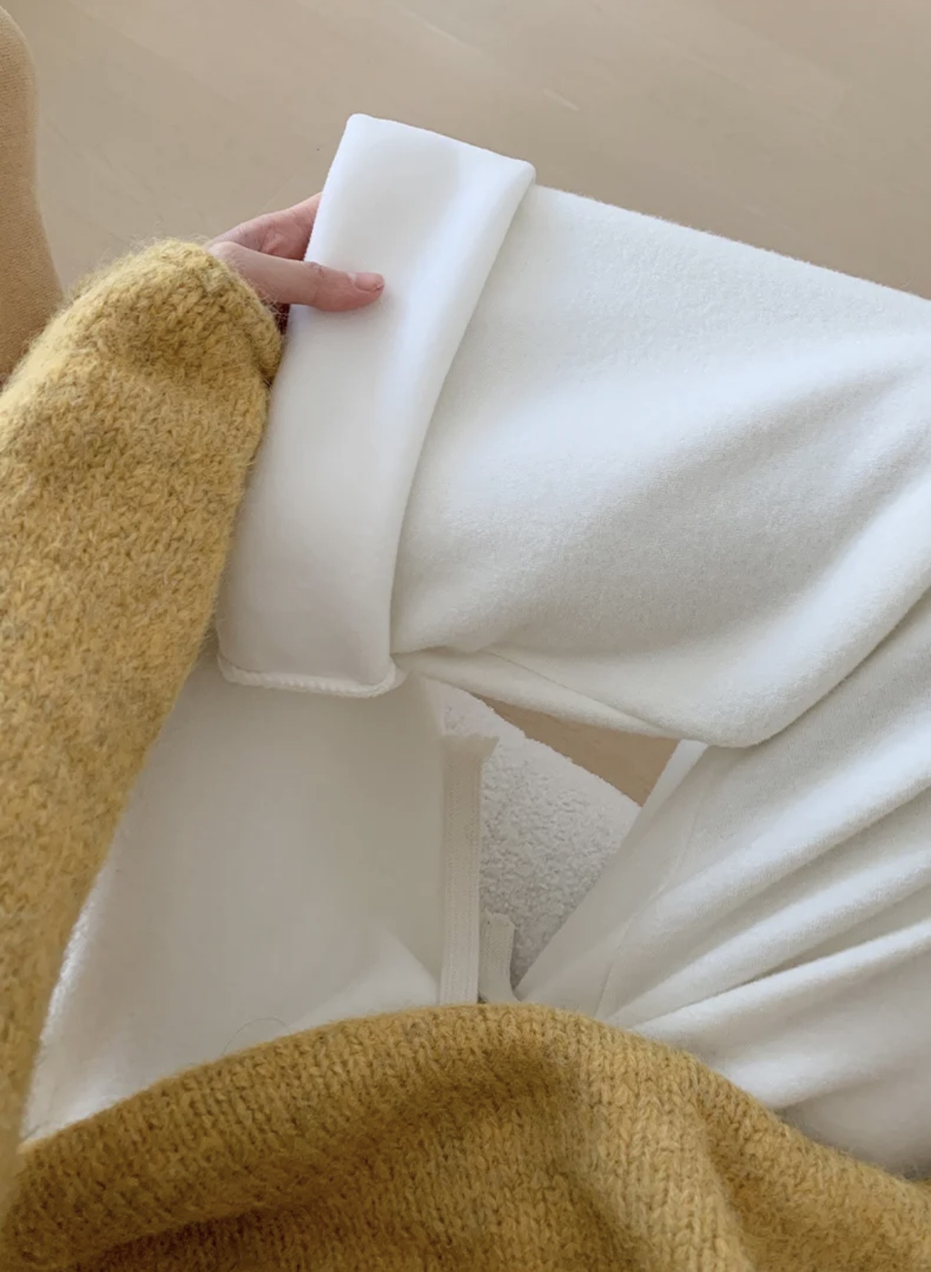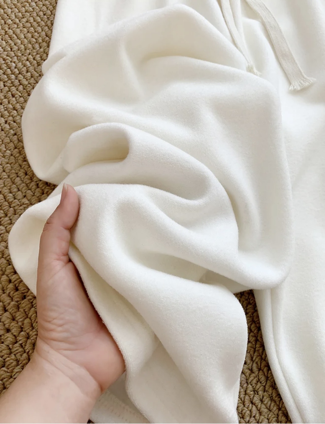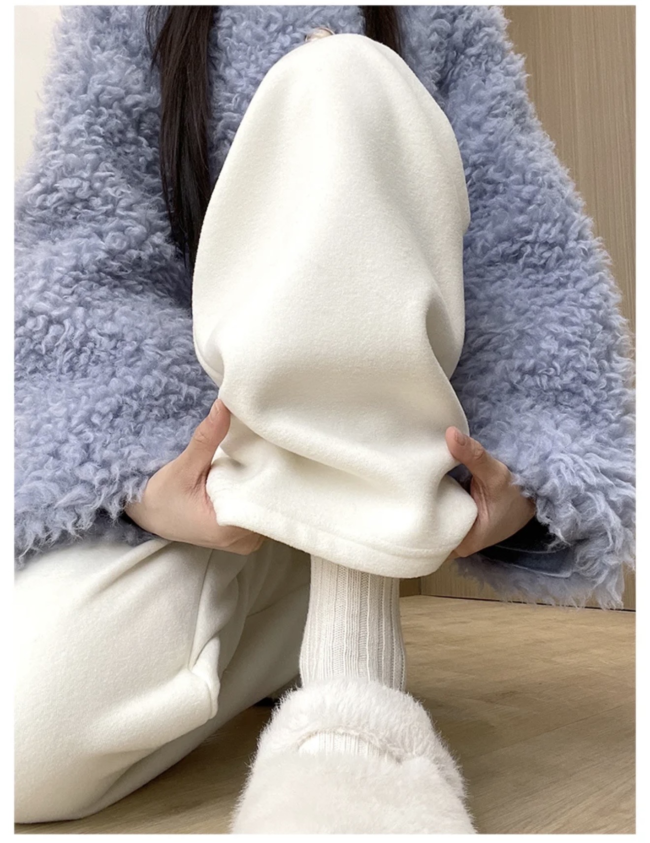秋冬新款|高腰垂墜感加厚加絨白色軟糯米褲