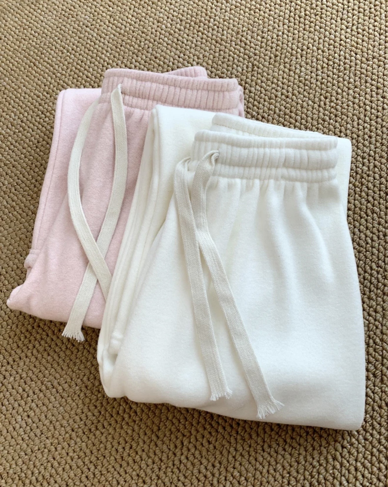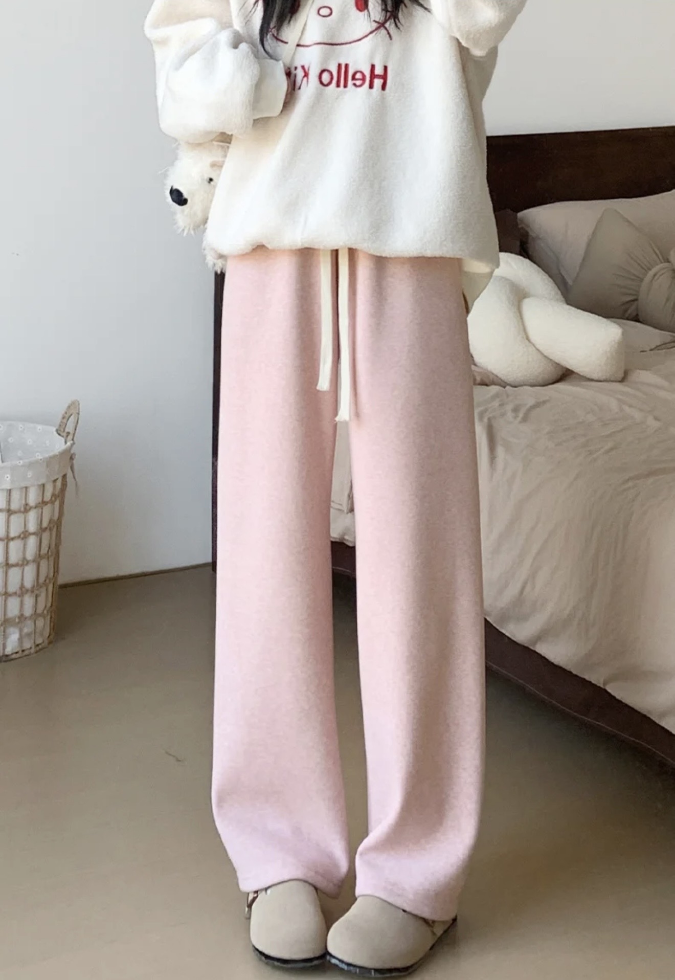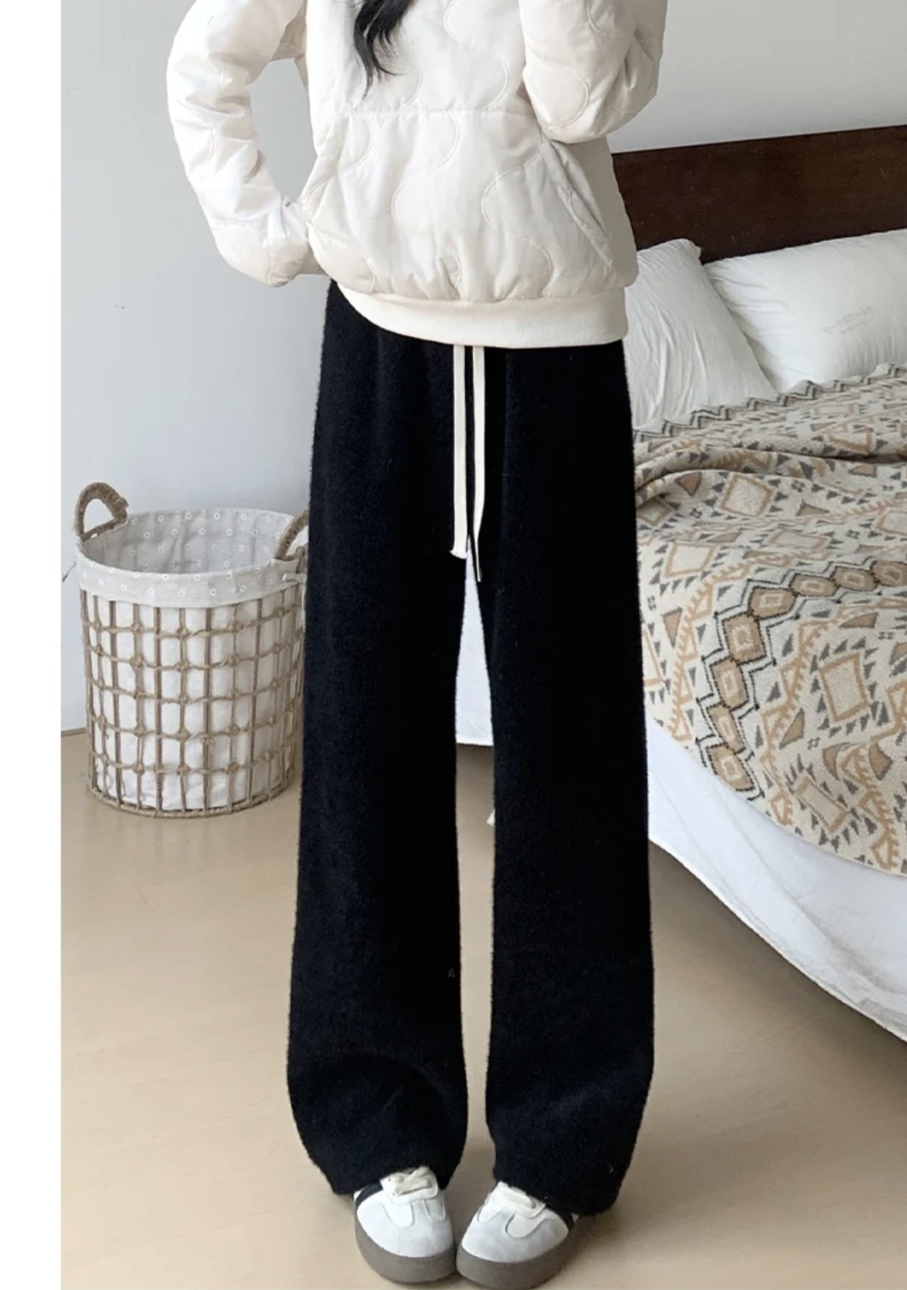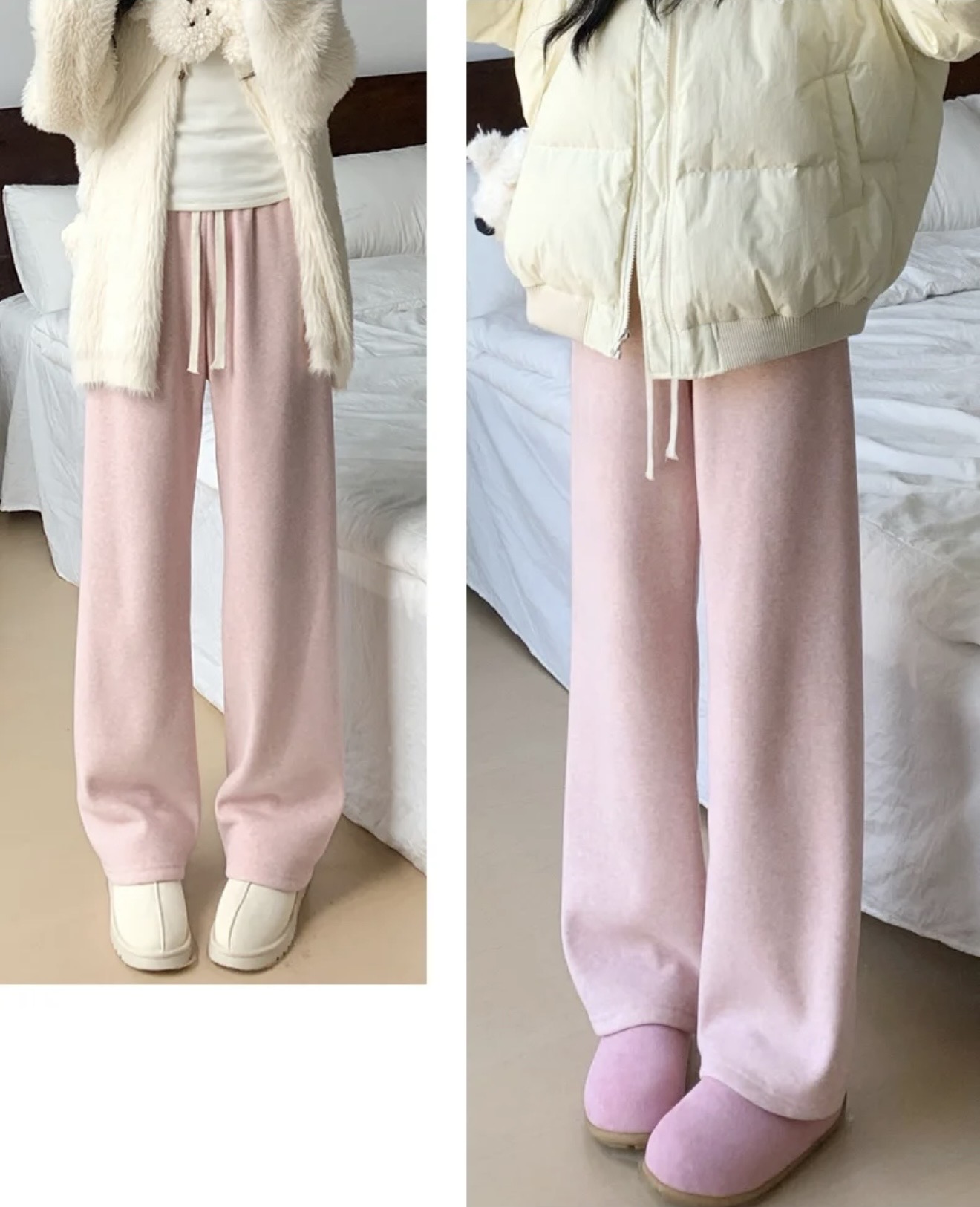 秋冬新款|高腰垂墜感加厚加絨白色軟糯米褲