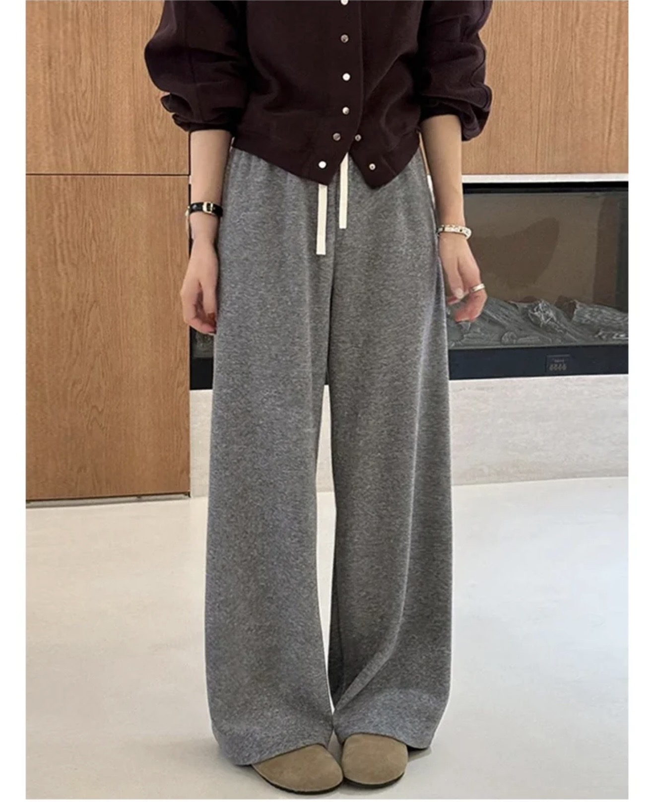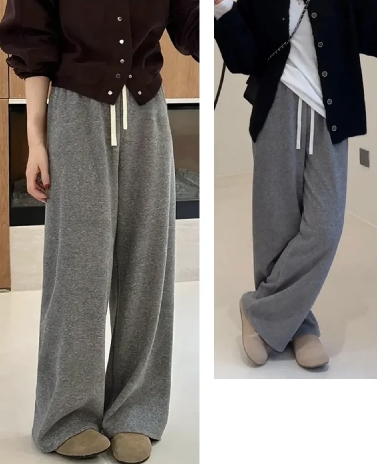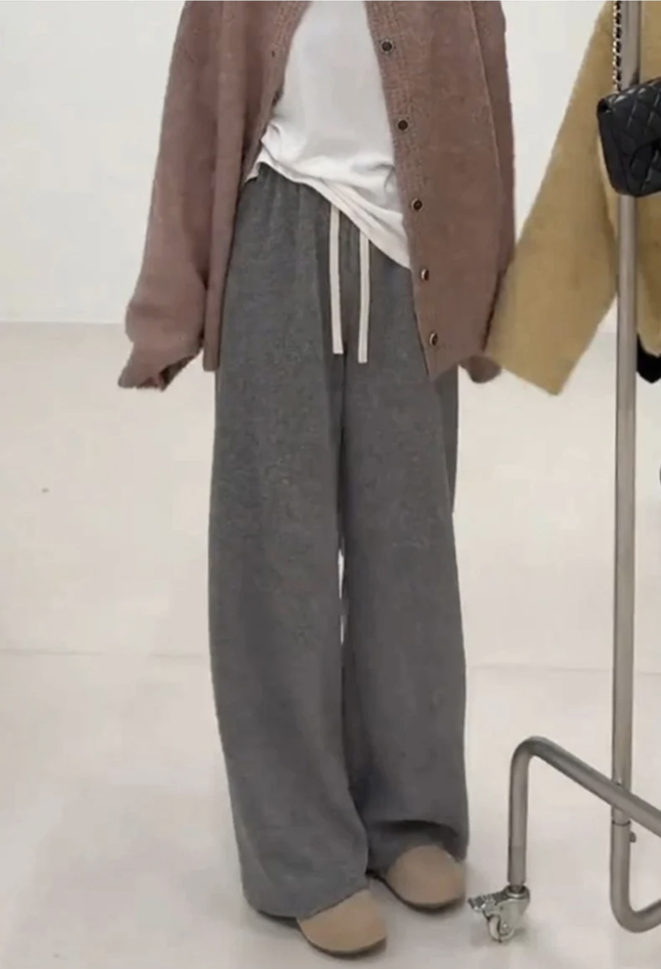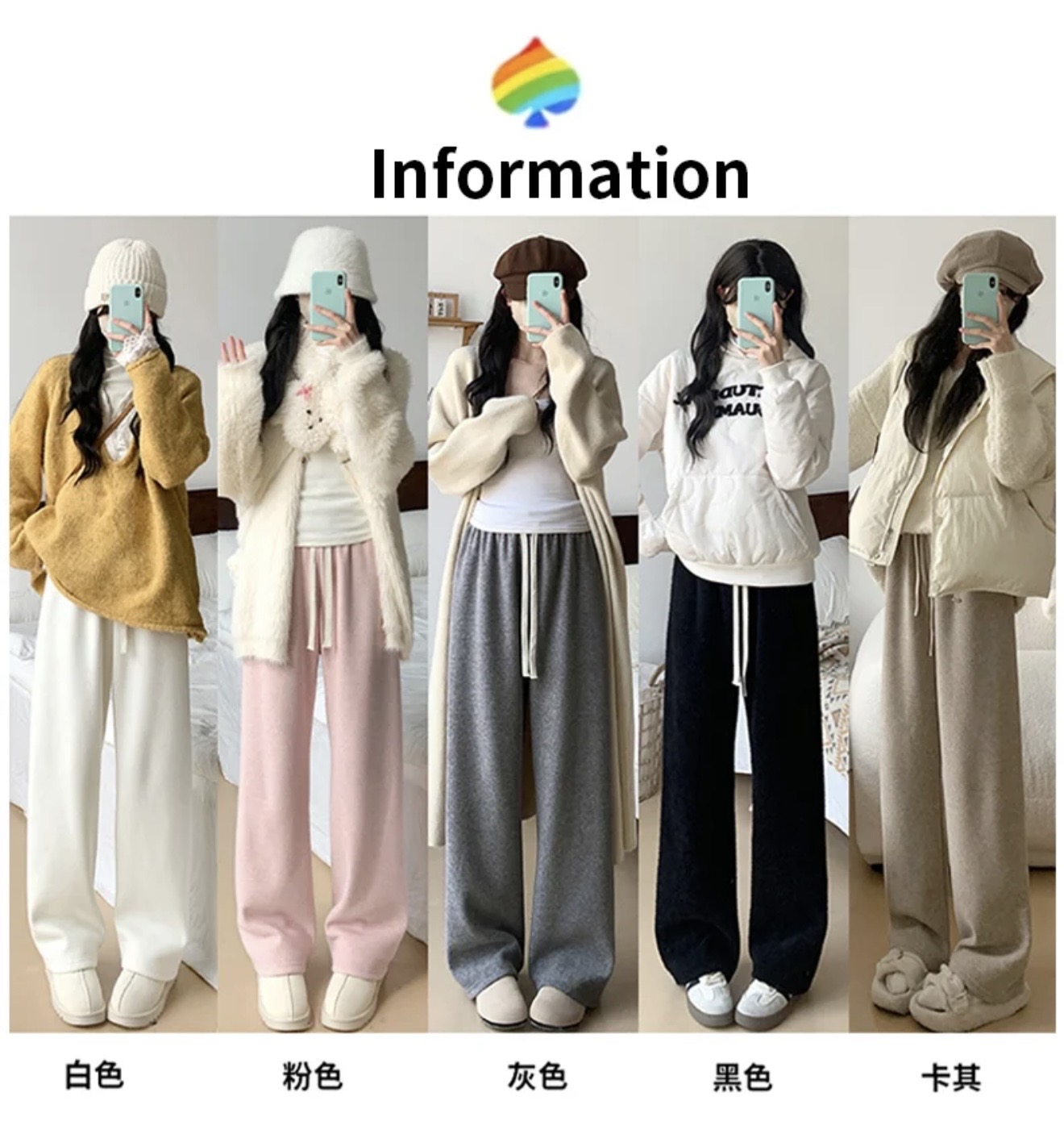 秋冬新款|高腰垂墜感加厚加絨白色軟糯米褲